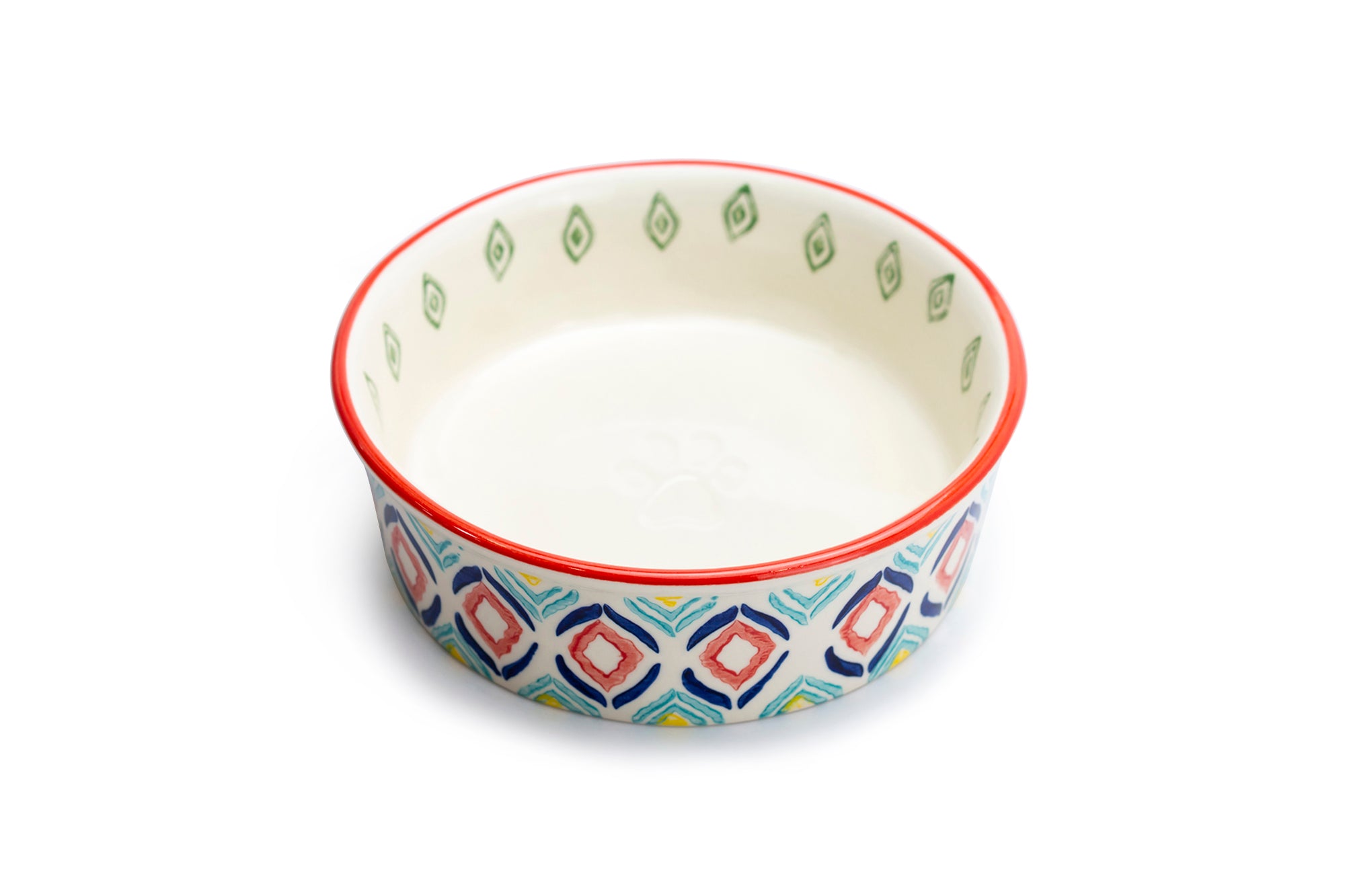 6.25" Organic Ikat Multicolor Heavy Weight Ceramic Pet Bowl