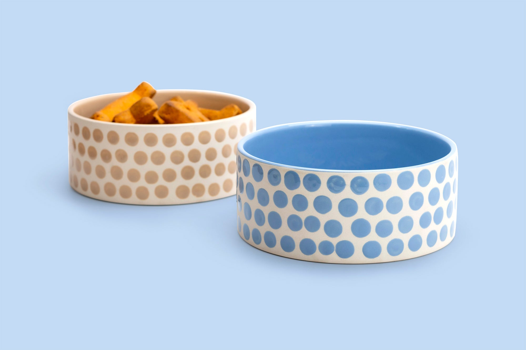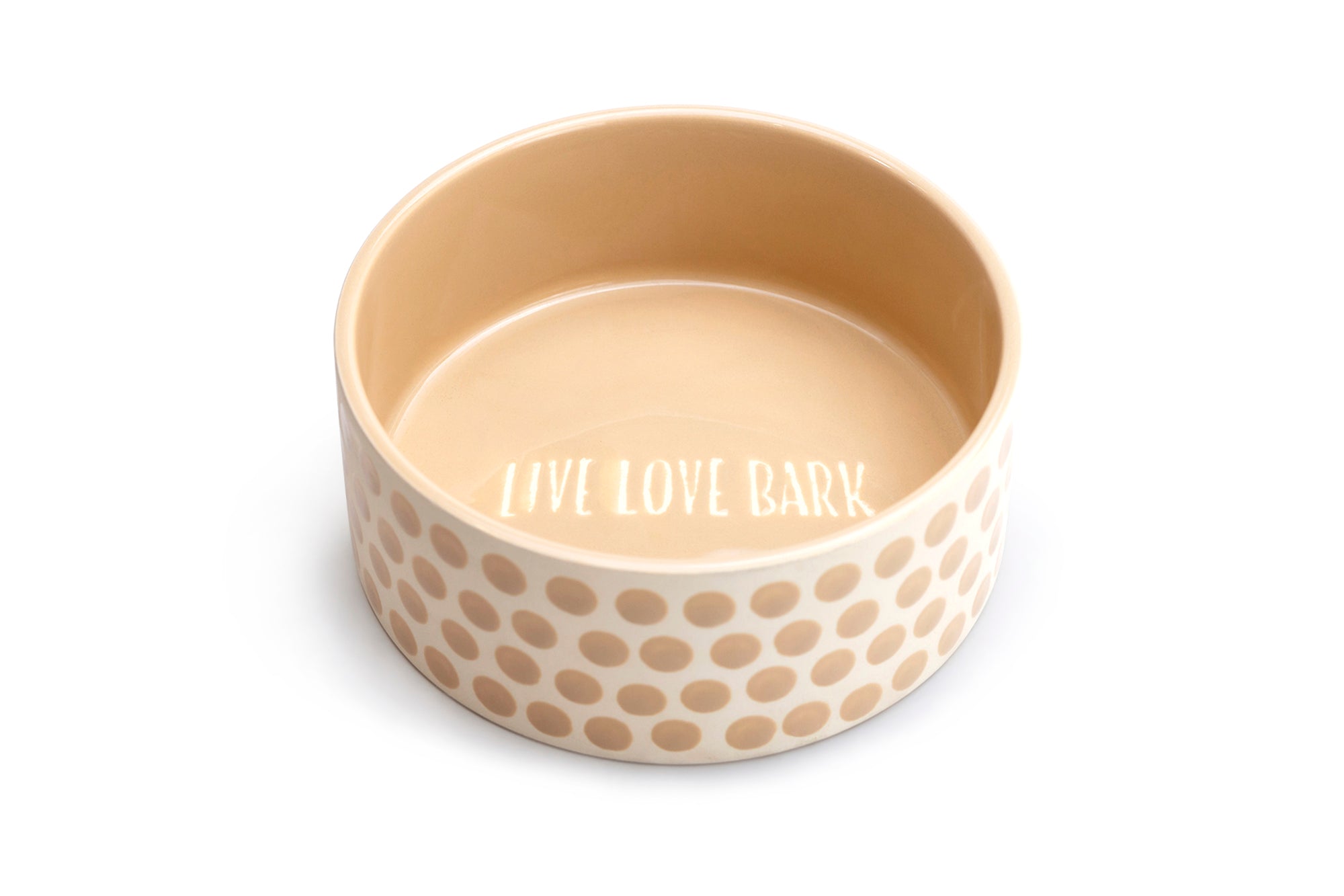 7" Taupe Dots Heavy Weight Ceramic Pet Bowl