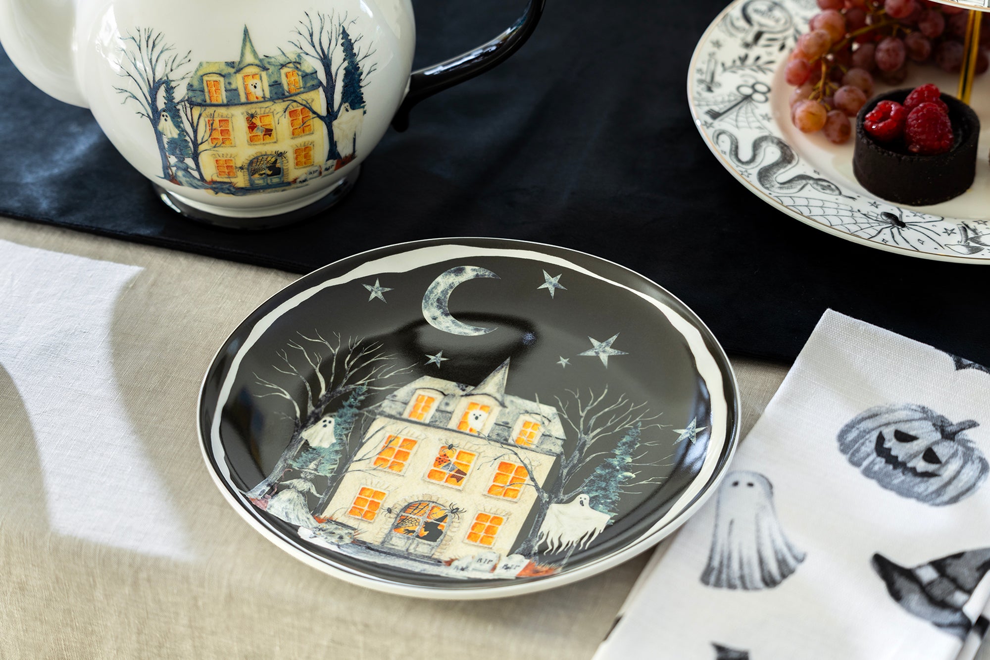 8.75" Halloween Midnight Haunted House Dessert/Salad Plate