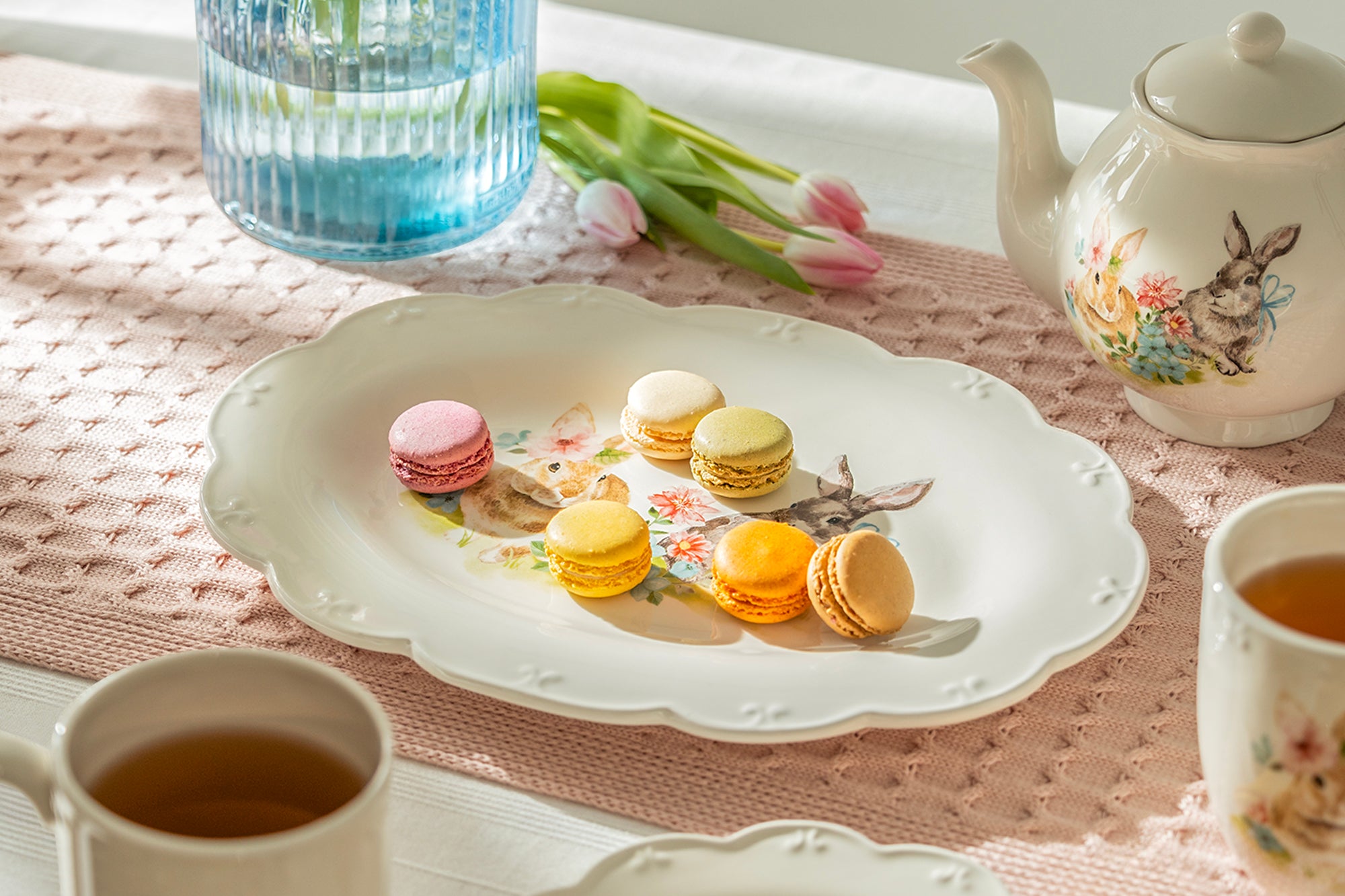 14.5" Flower Bunny Scallop Oval Serving Platter