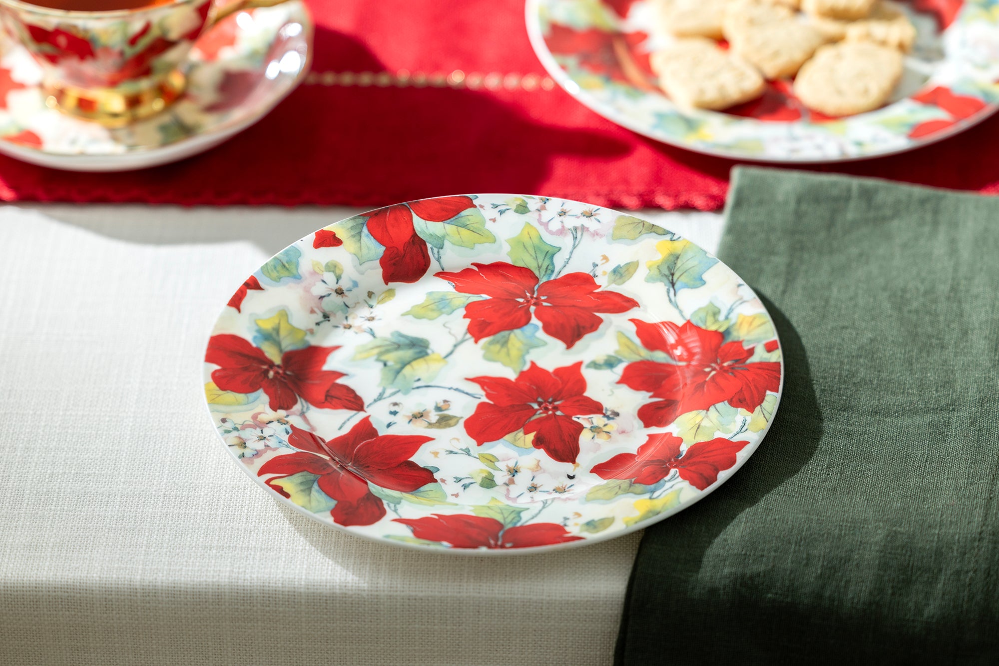 • 7.5" Poinsettia Bone China Dessert Plate