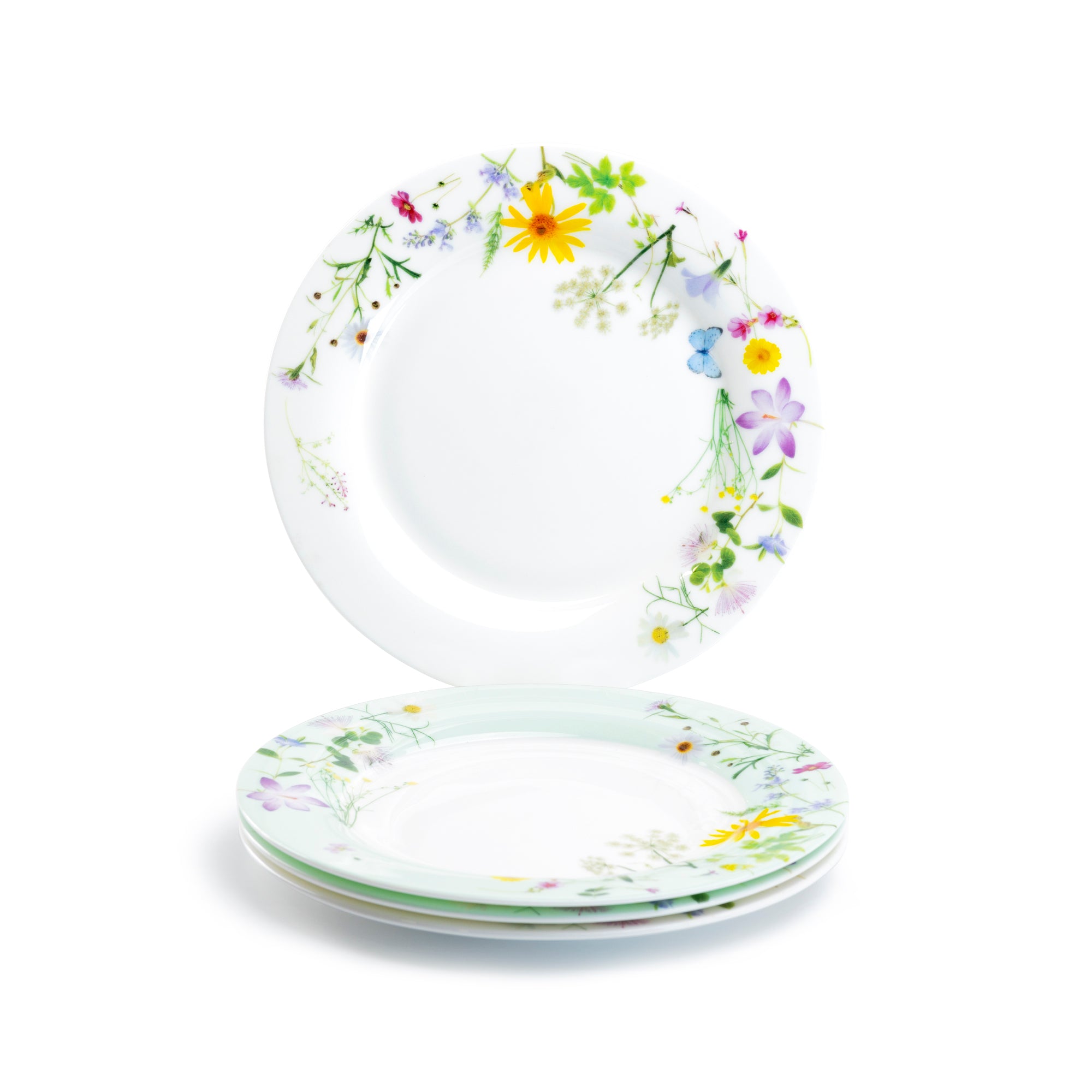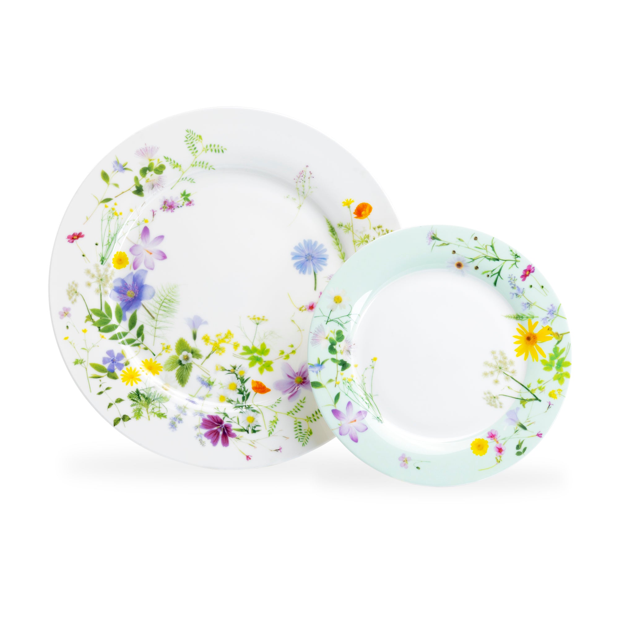 Set of 4 assorted plate set - 2 white plates and 2 mint plates