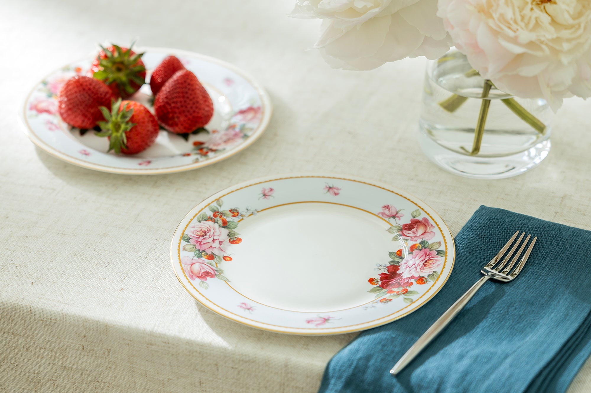 • 7.75" Peony and Strawberry Blue Bone China Dessert Plate
