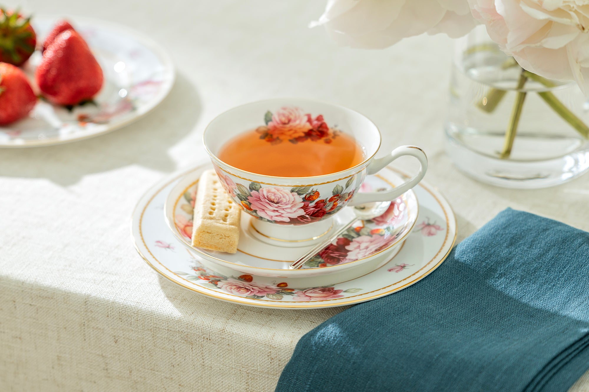 7.75" Peony and Strawberry Blue Bone China Dessert Plate