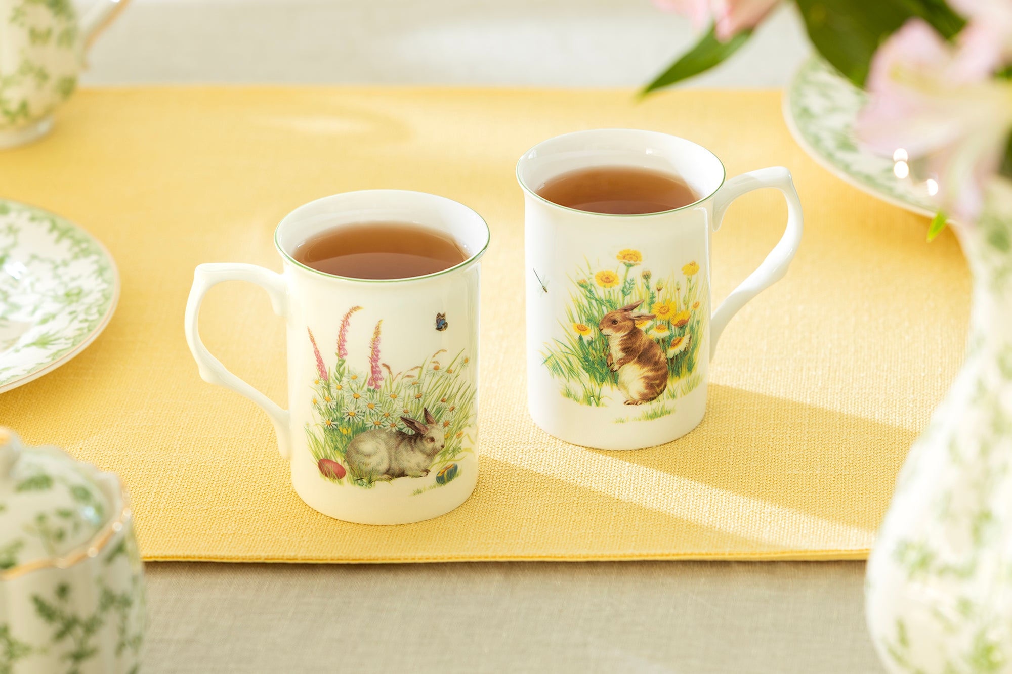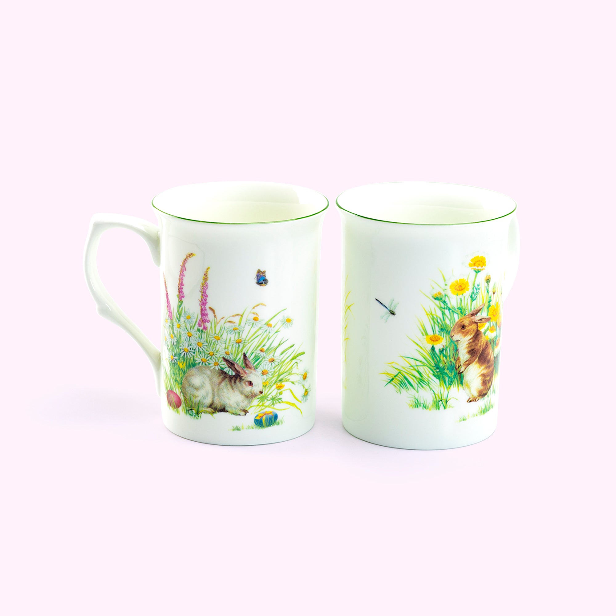 • Flower Brown Bunny & Flower White Bunny Bone China Assorted Mugs