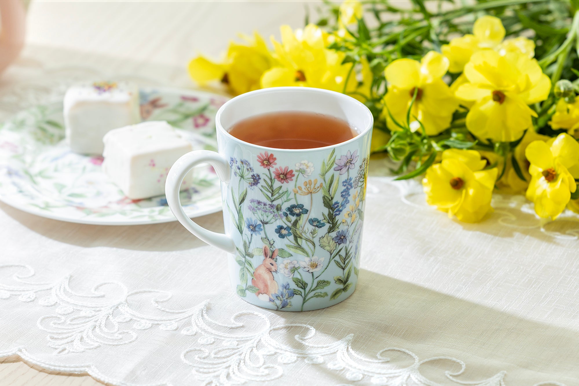 Bunny Meadow Blue Bone China Mug