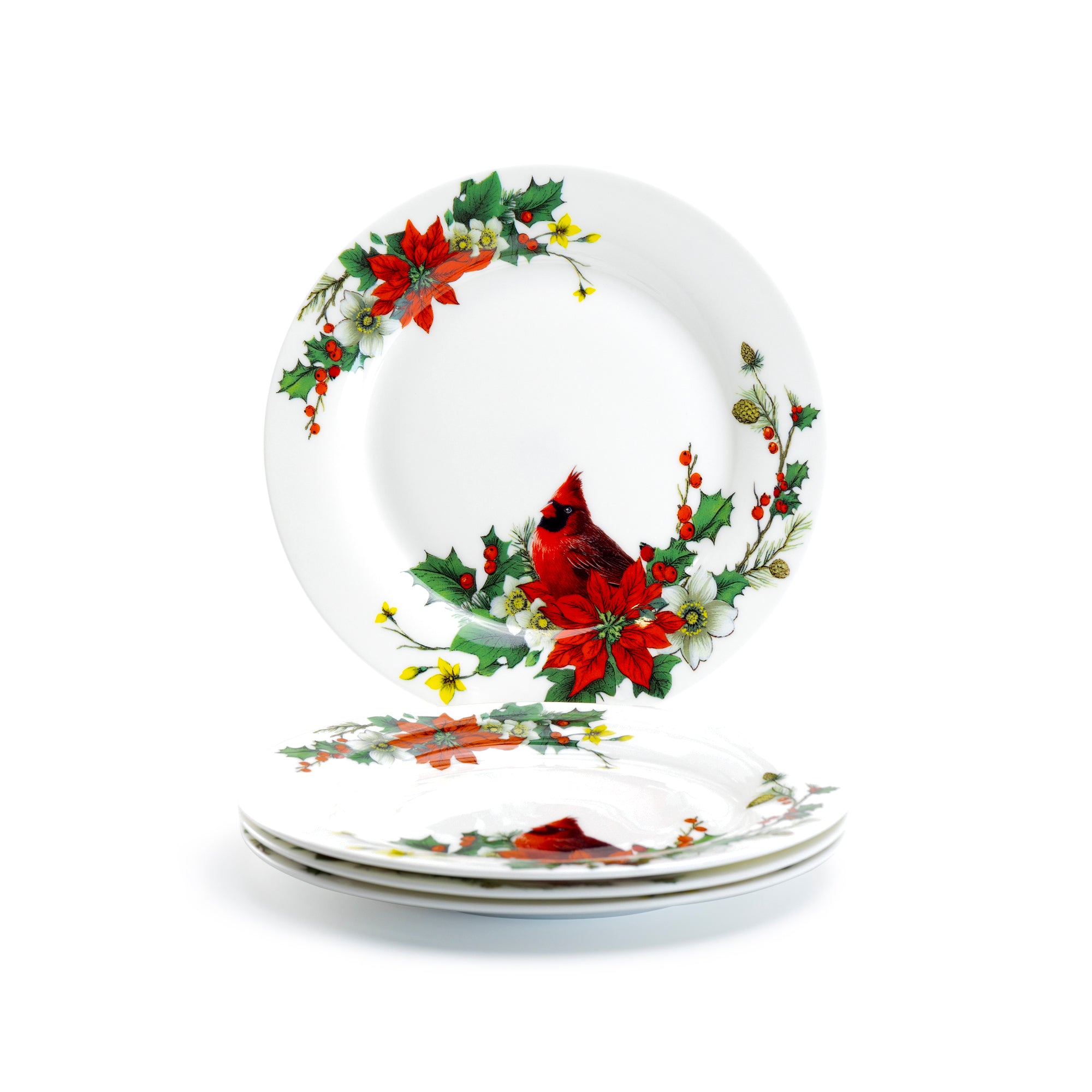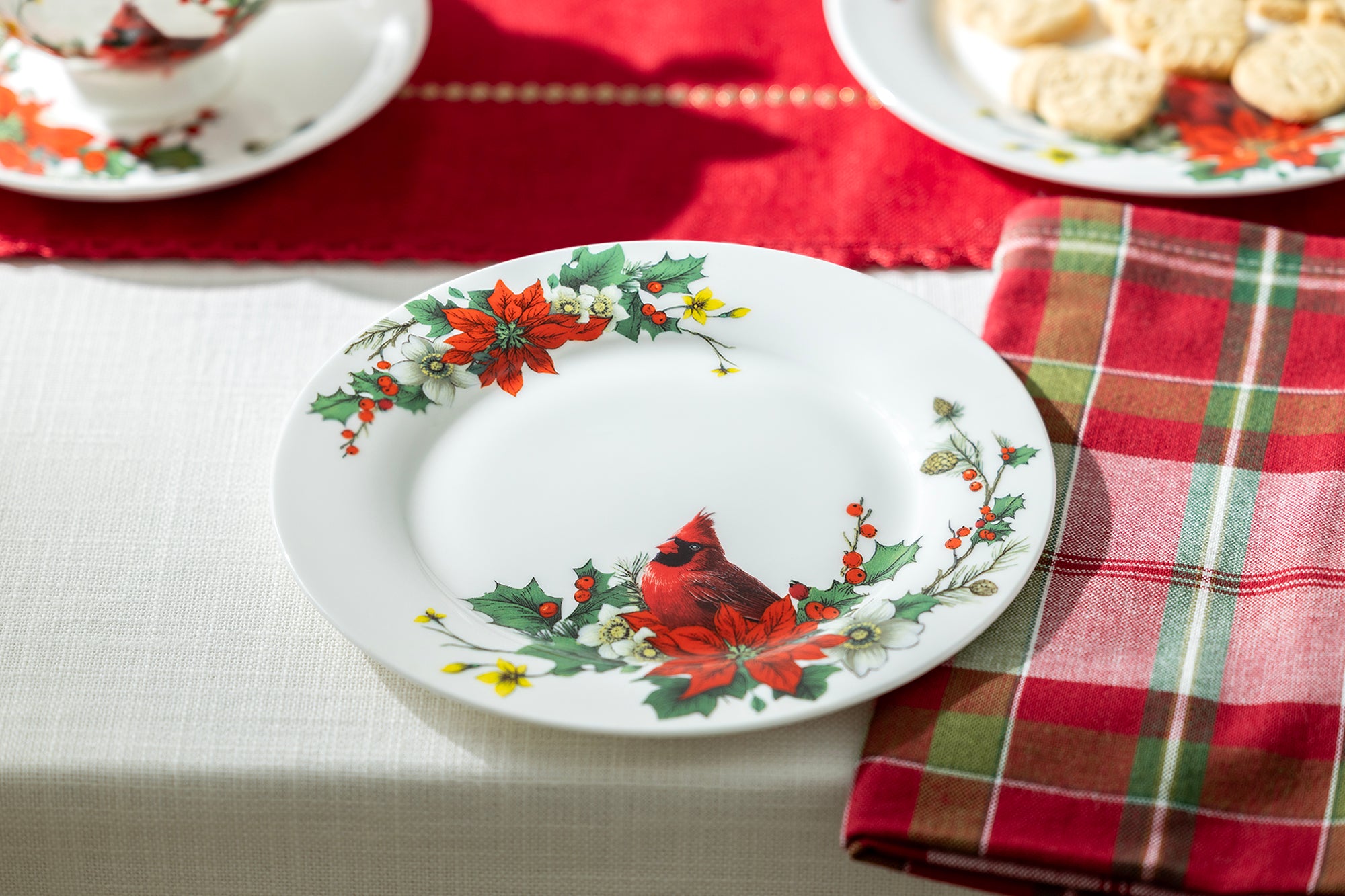 • 7.5" Cardinal Poinsettia Bone China Dessert Plate