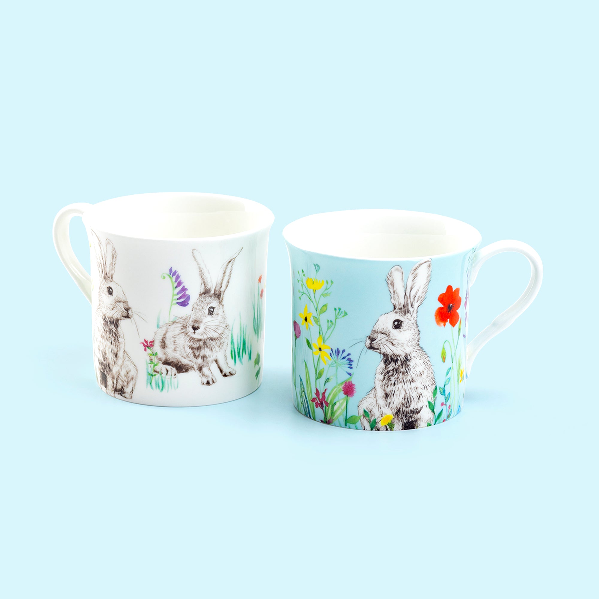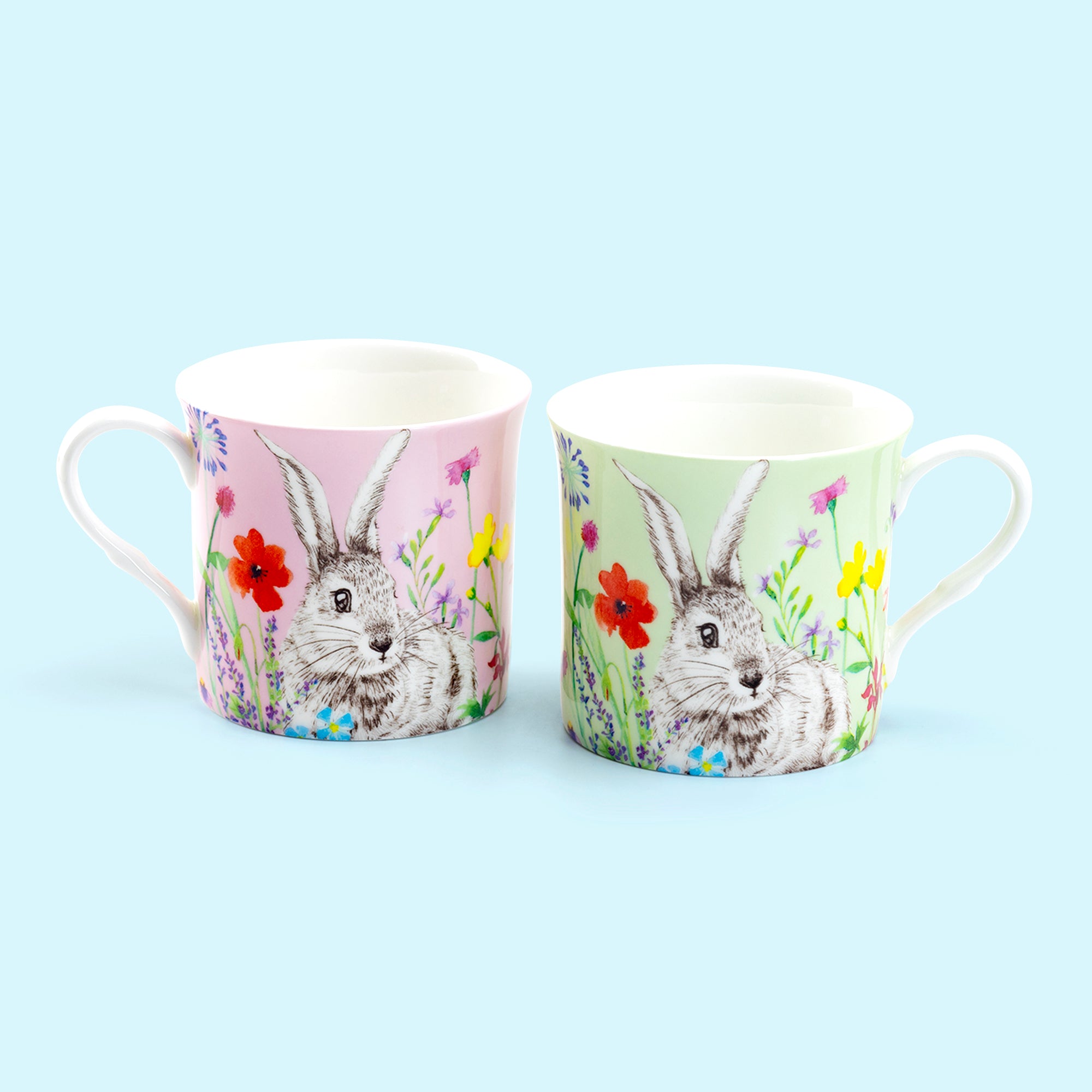 • Flower Bunny Bone China 4-Color Assorted Mugs