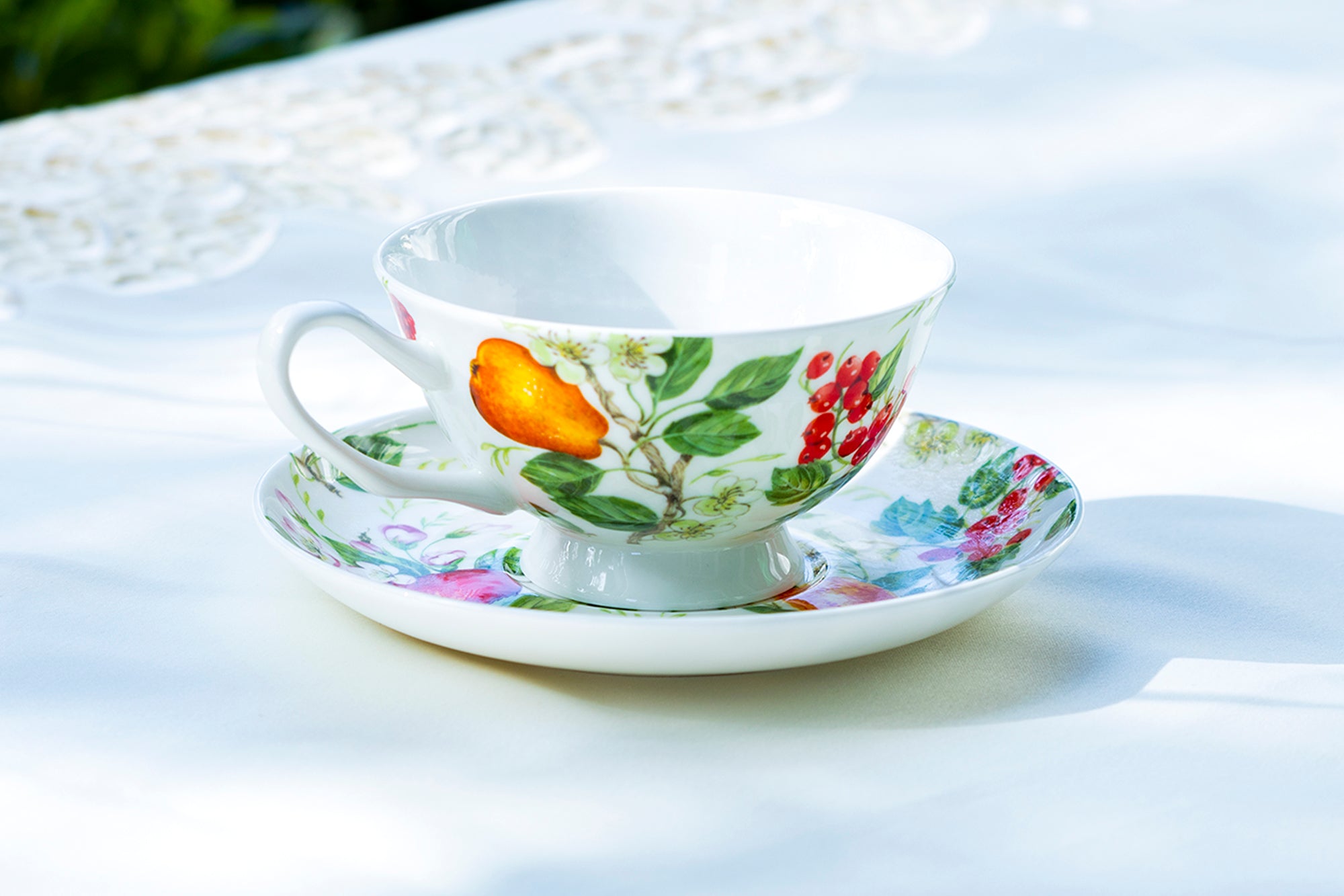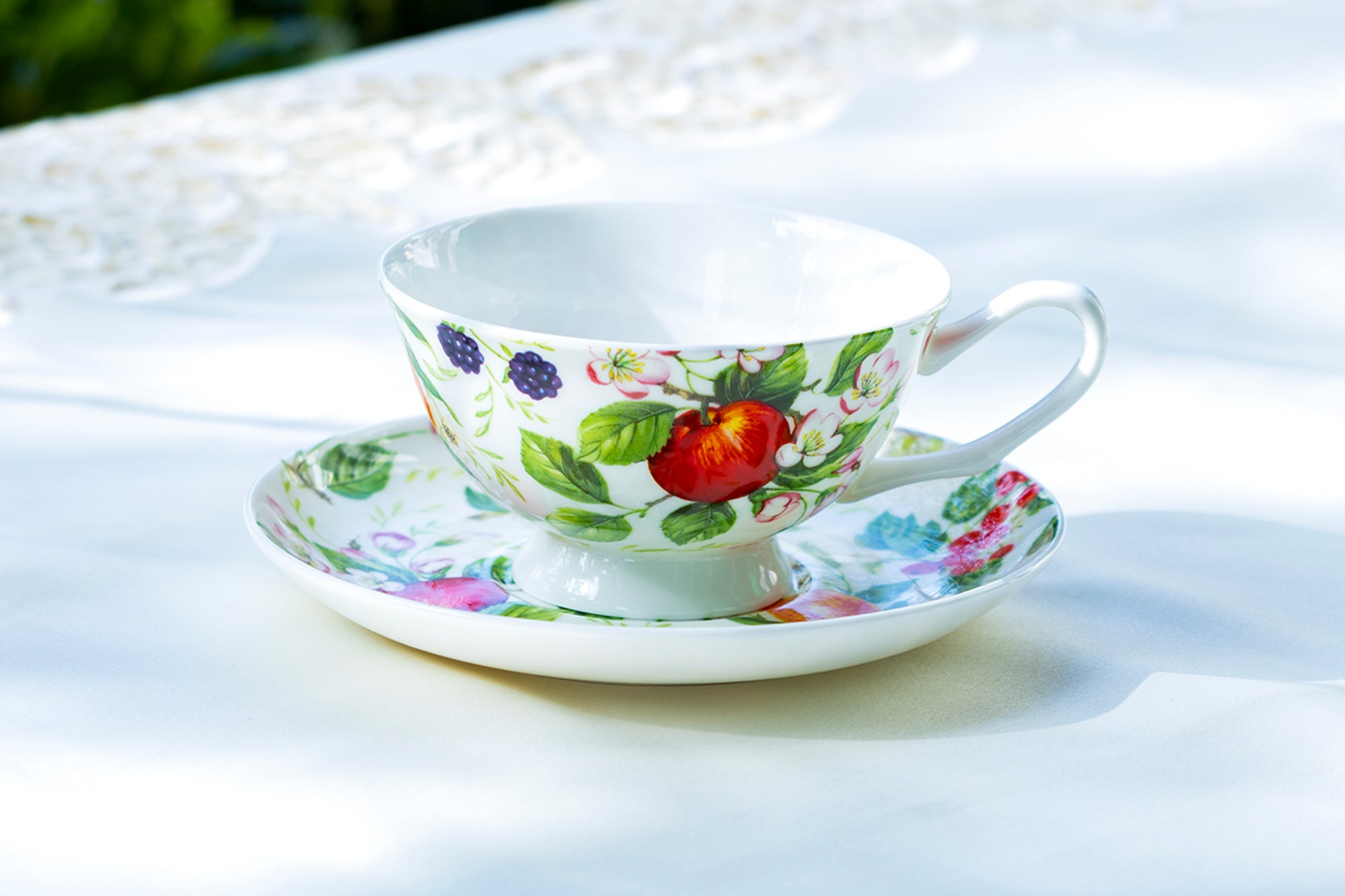 • Fruits Garden Bone China Tea Cup and Saucer