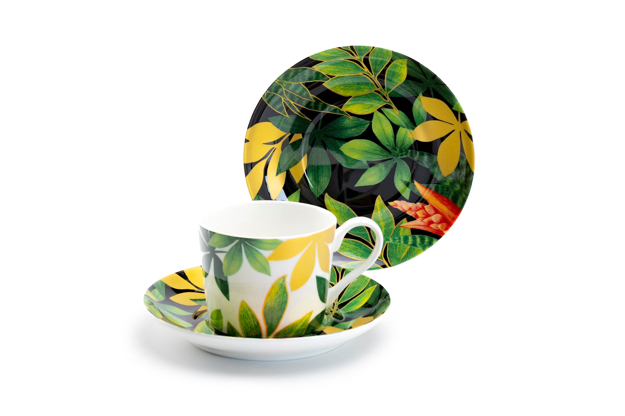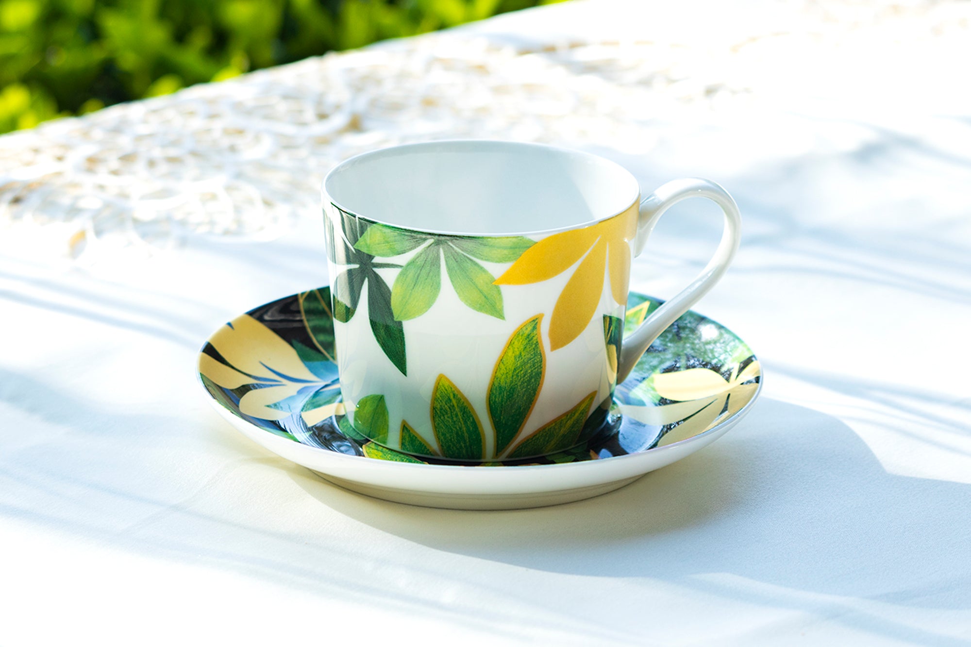 Green Gold Leaves Bone China Cup and Saucer