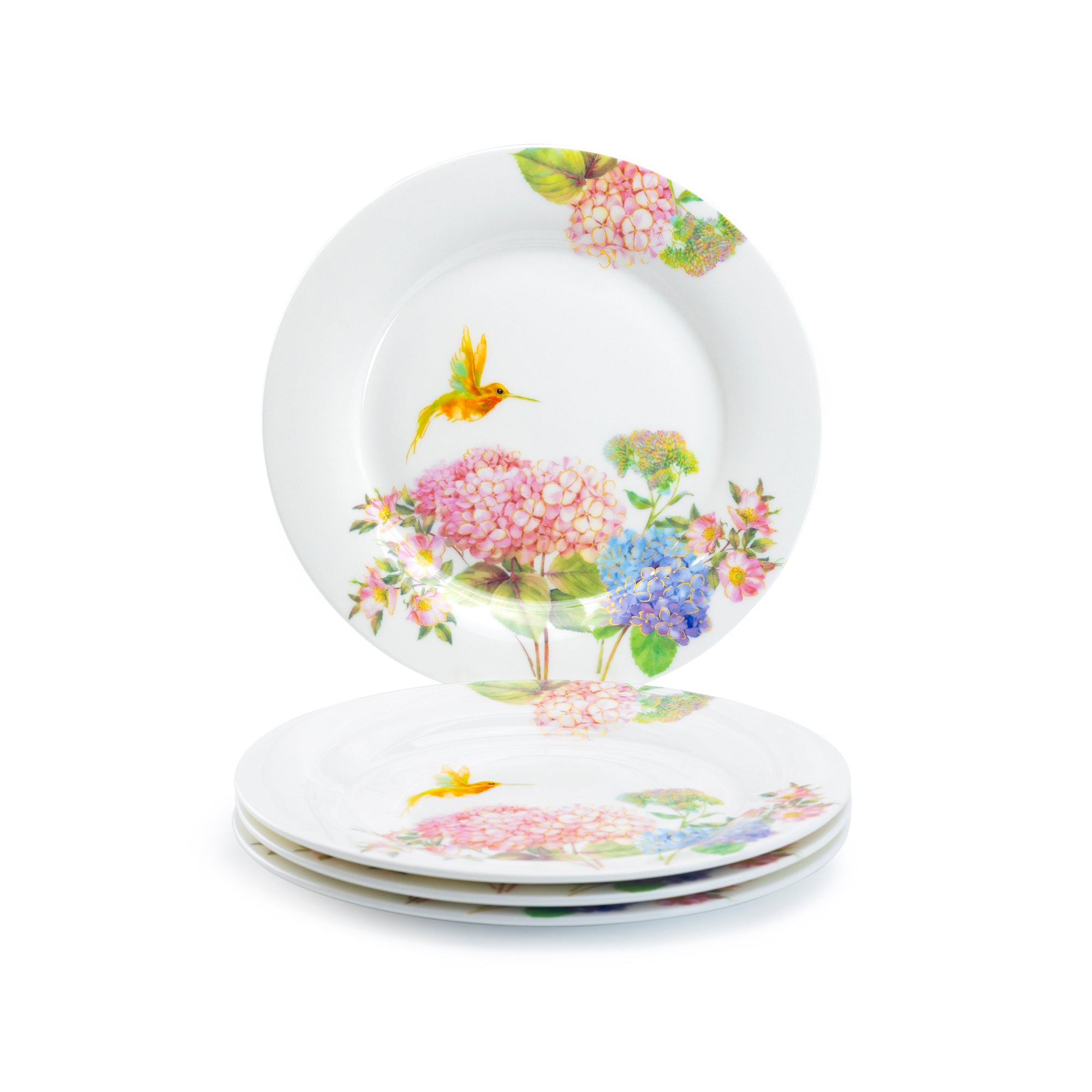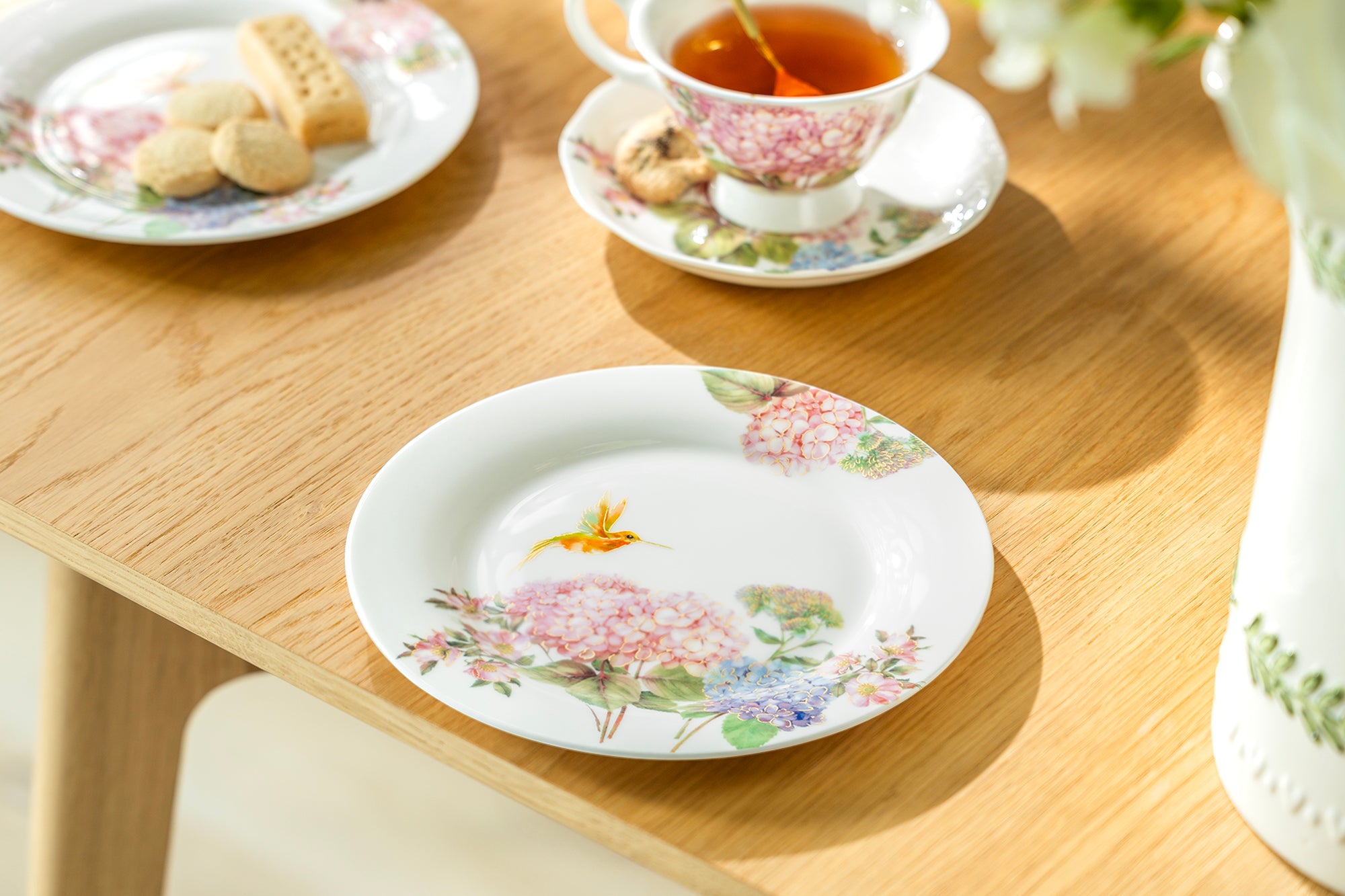 • 7.5" Hydrangea with Hummingbird Bone China Dessert Plate