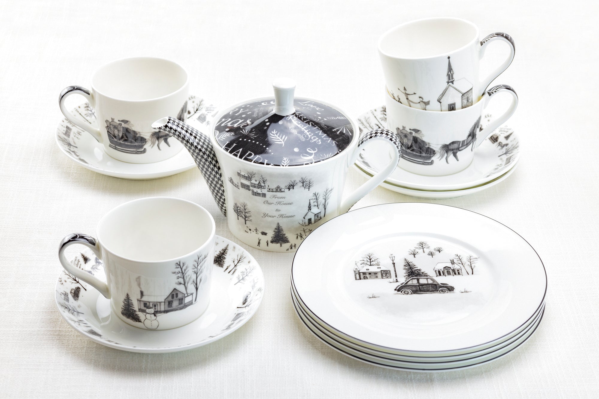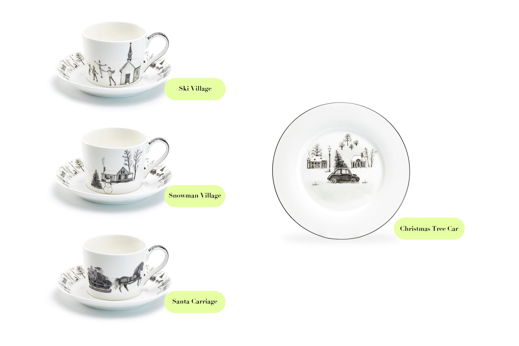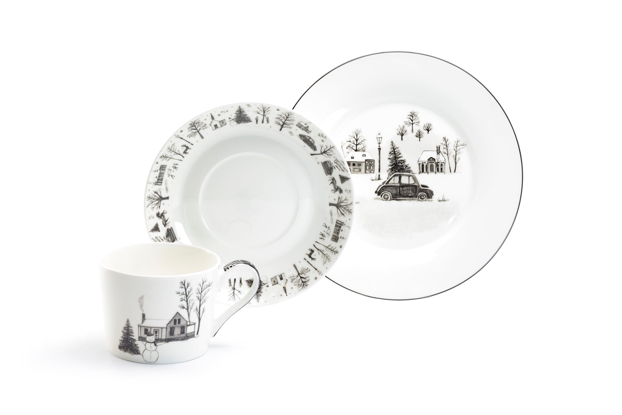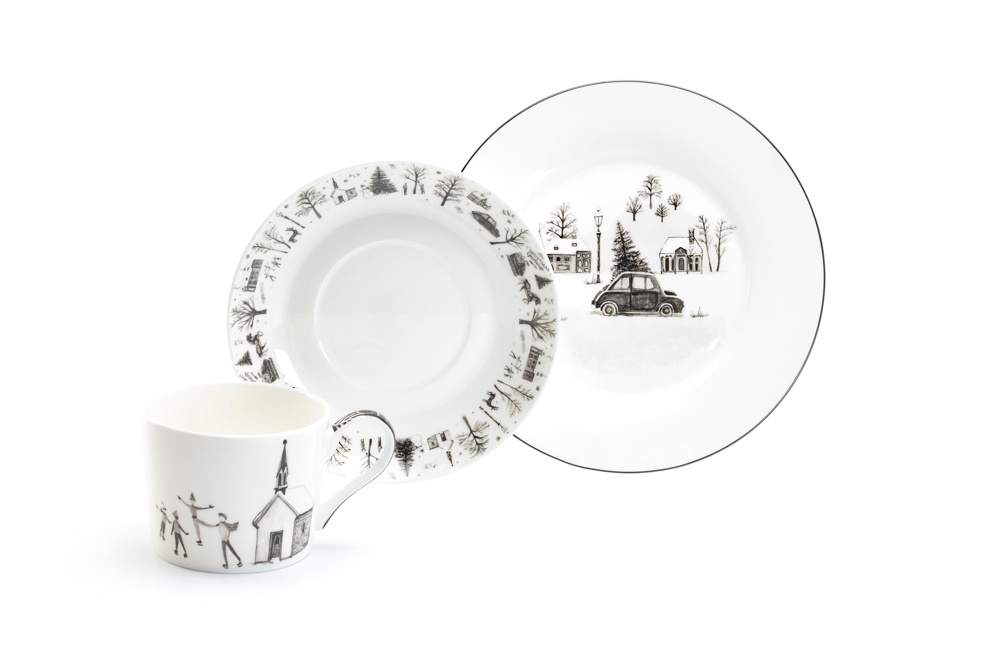 • 7.5" Winter Wonderland Christmas Tree Car Bone China Dessert Plate