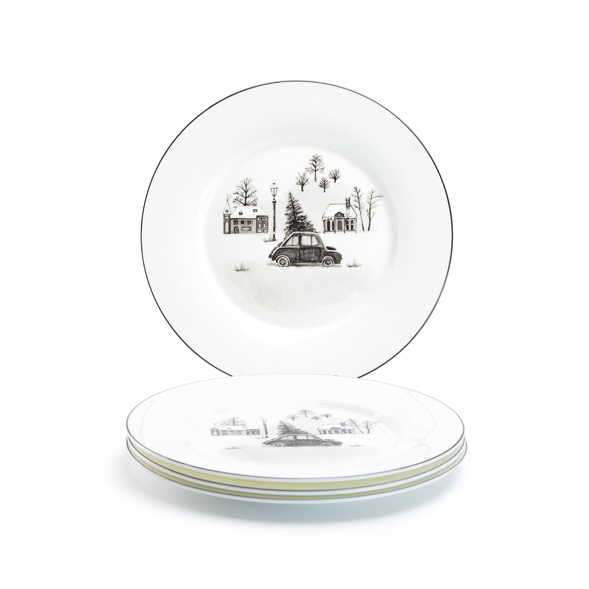 7.5" Winter Wonderland Christmas Tree Car Bone China Dessert Plate