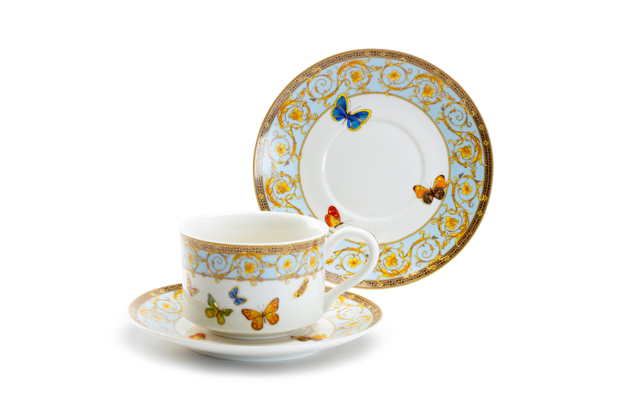 Butterflies with Blue Ornament Fine Porcelain Cup and Saucer
