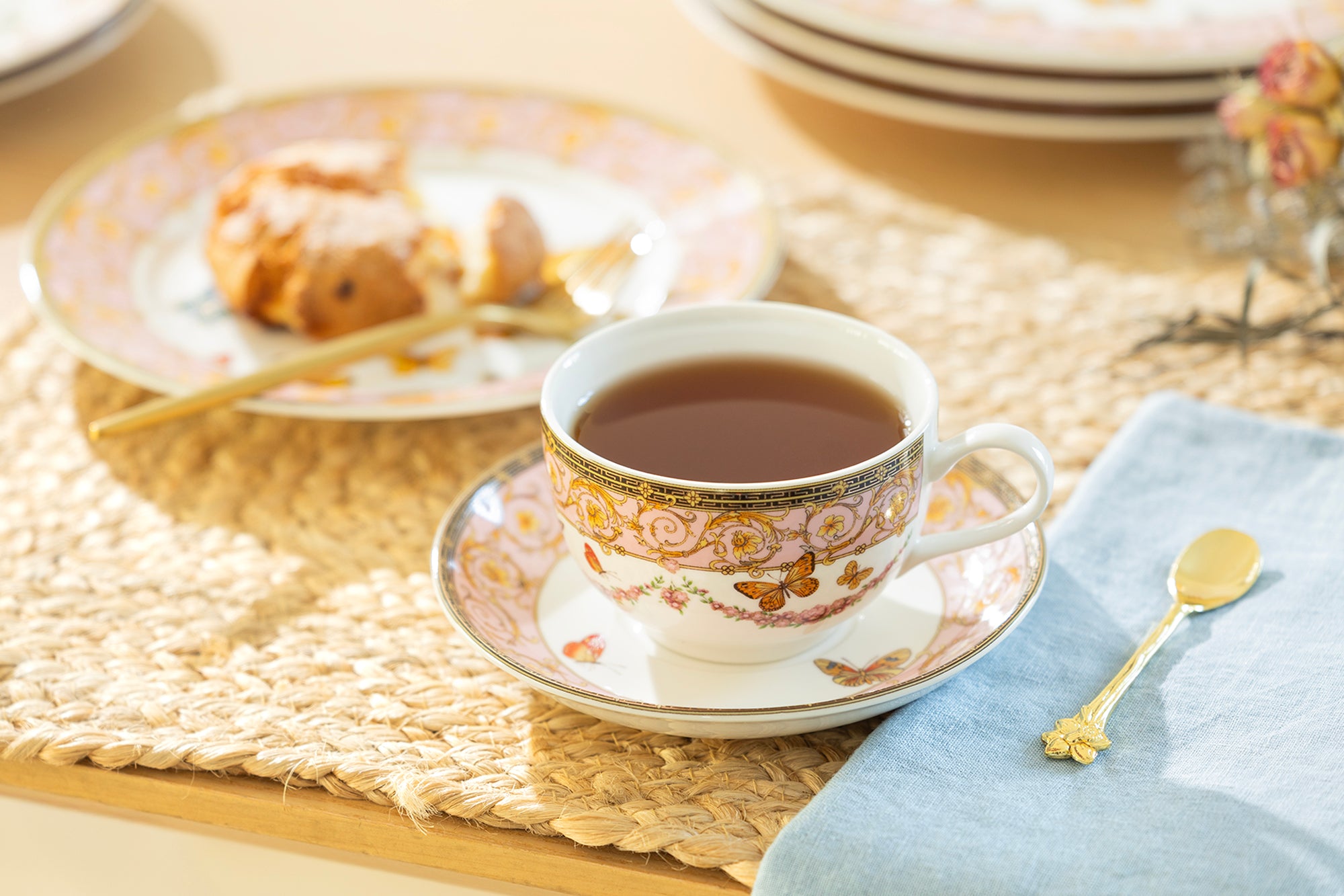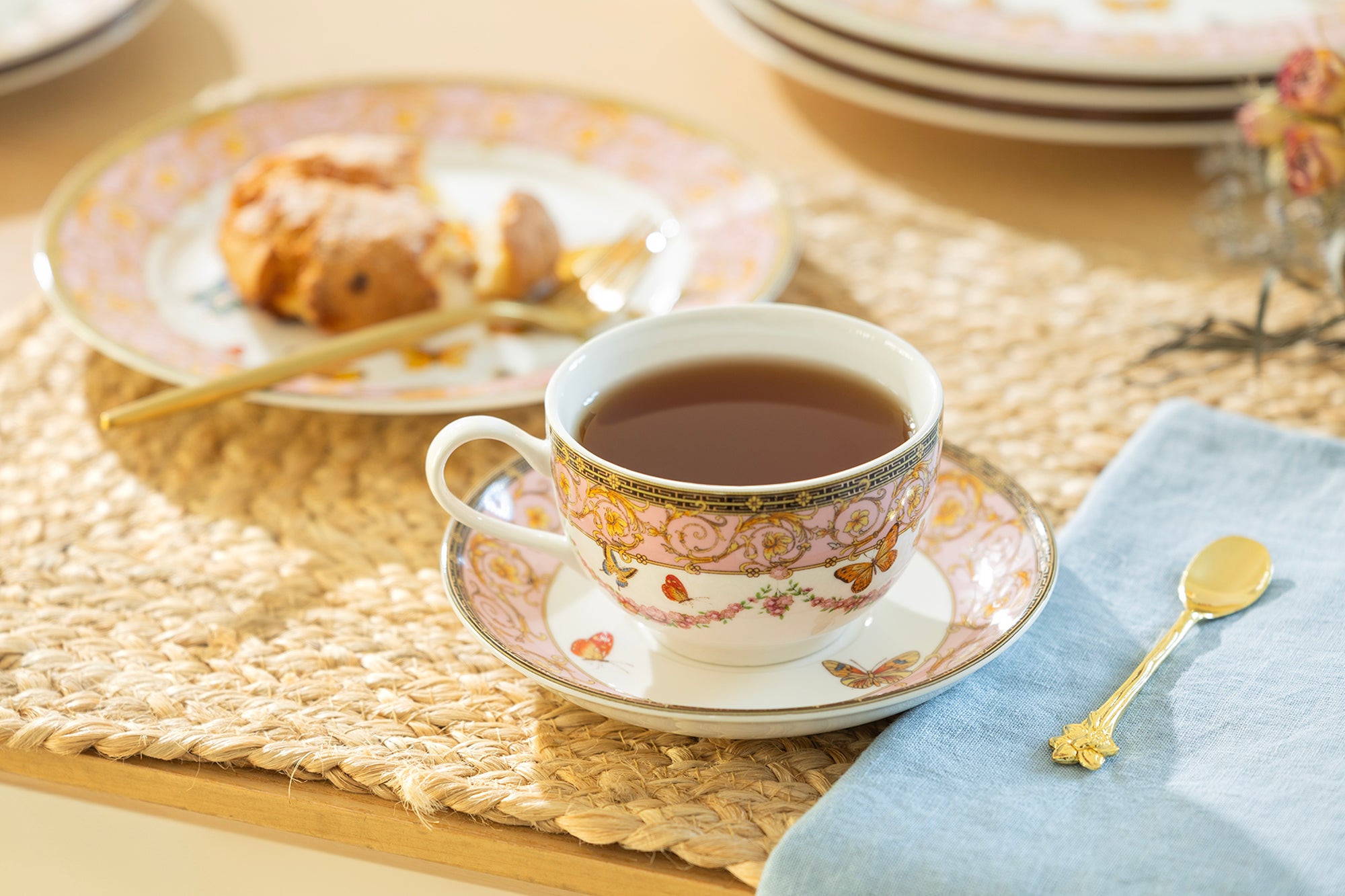• Butterflies with Pink Ornament Fine Porcelain Tea Cup and Saucer