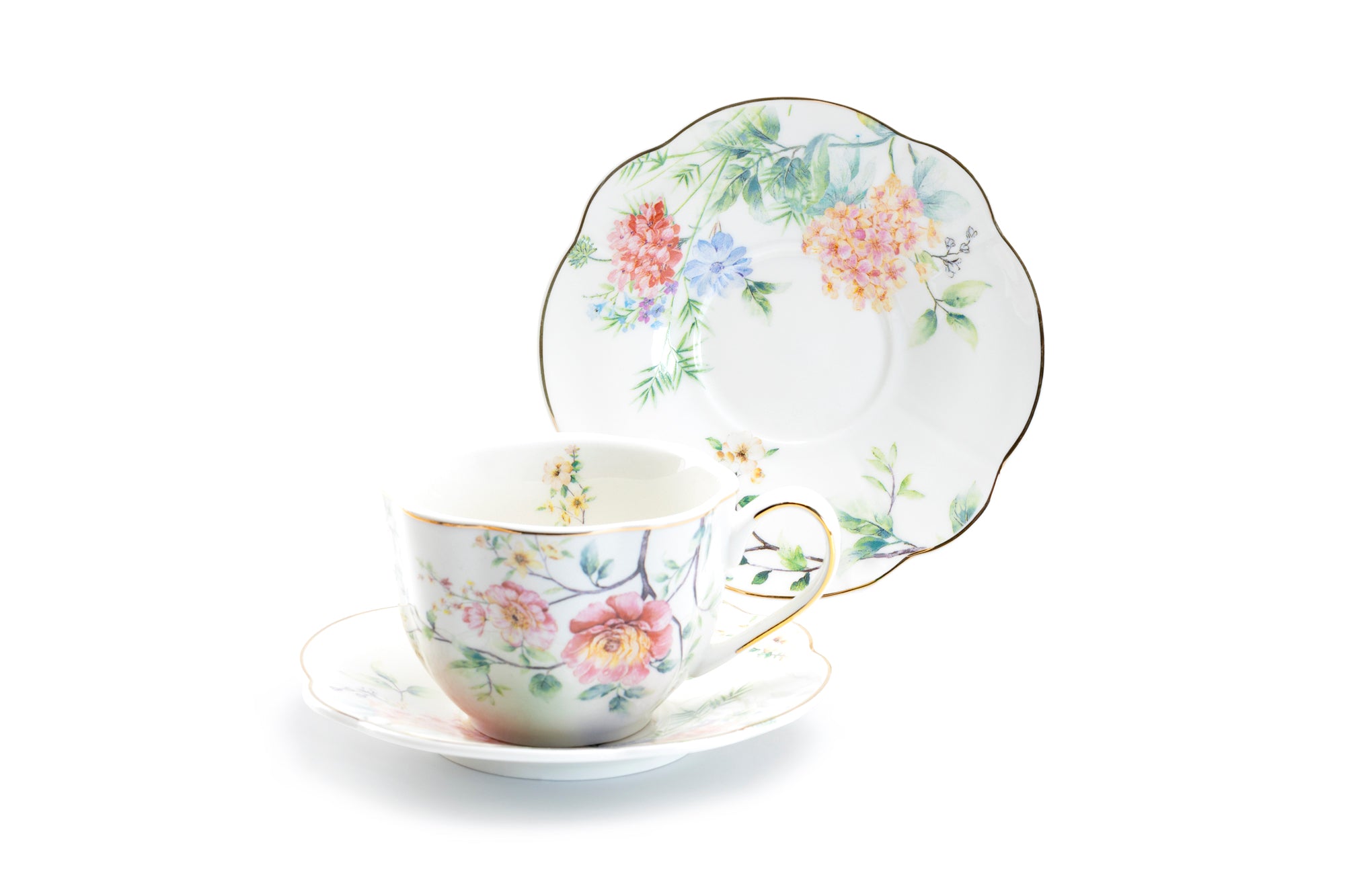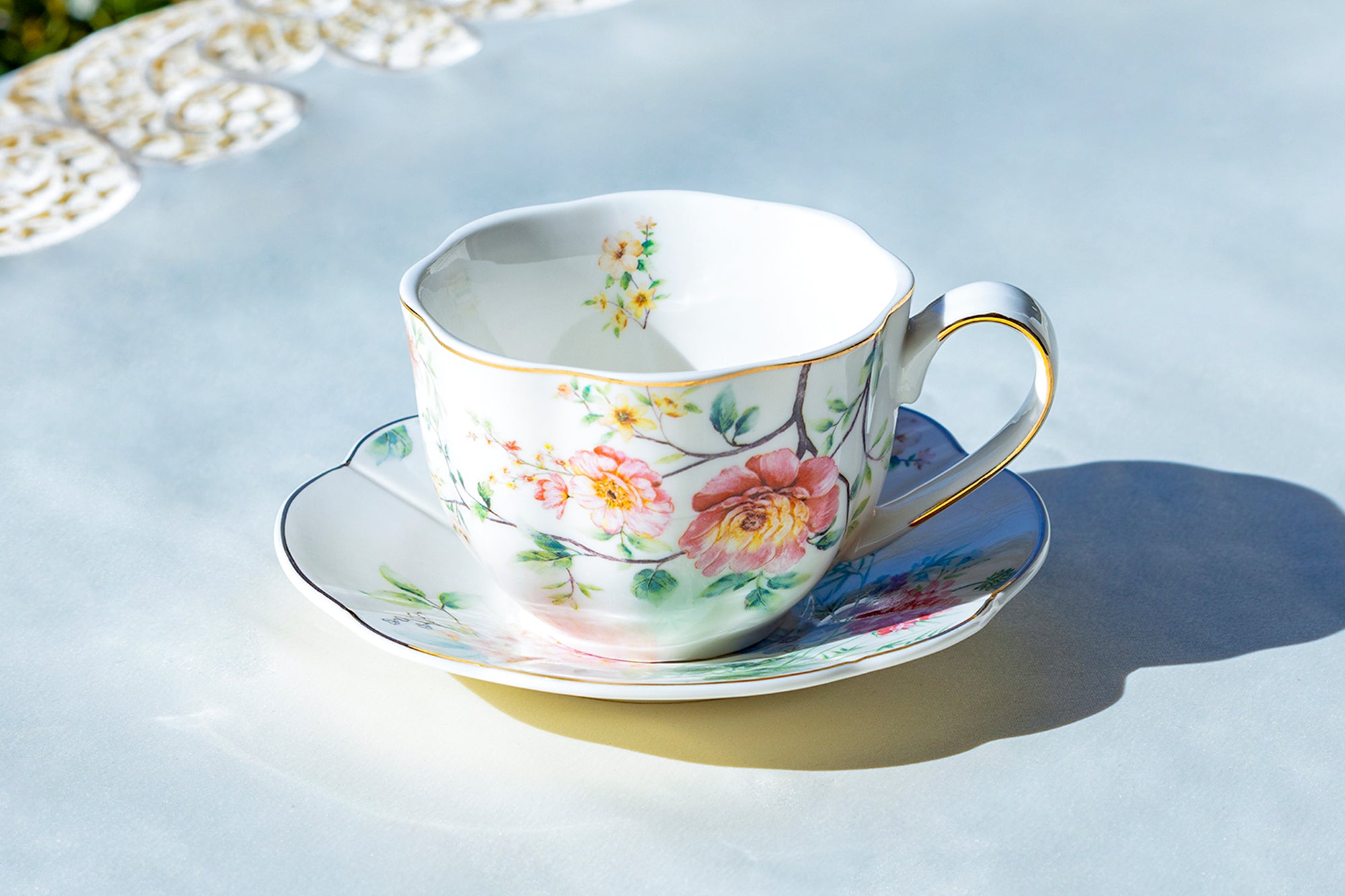 • Camellia Scallop Fine Porcelain Tea Cup and Saucer