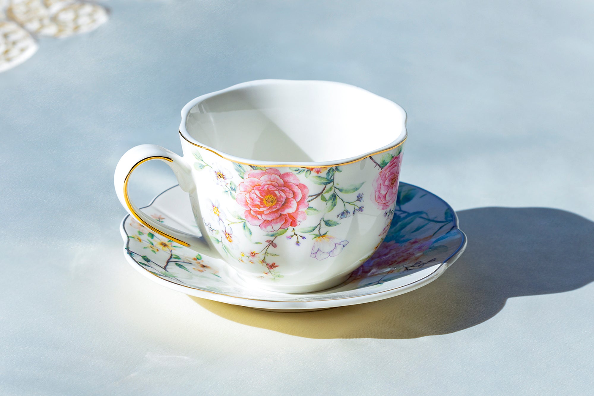 Camellia Scallop Fine Porcelain Tea Cup and Saucer