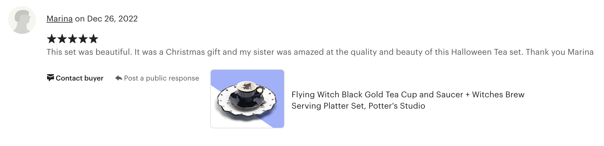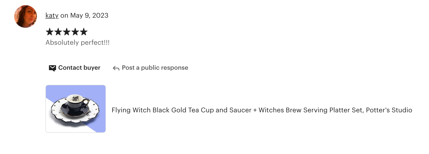 This set includes 1 Flying Witch cup and saucer set and 1 Witches Brew serving platter. This product is handcrafted and you may notice small air bubbles or pinholes on its surface. This is normal and to be expected as a result of the intricate ceramic manufacturing process.