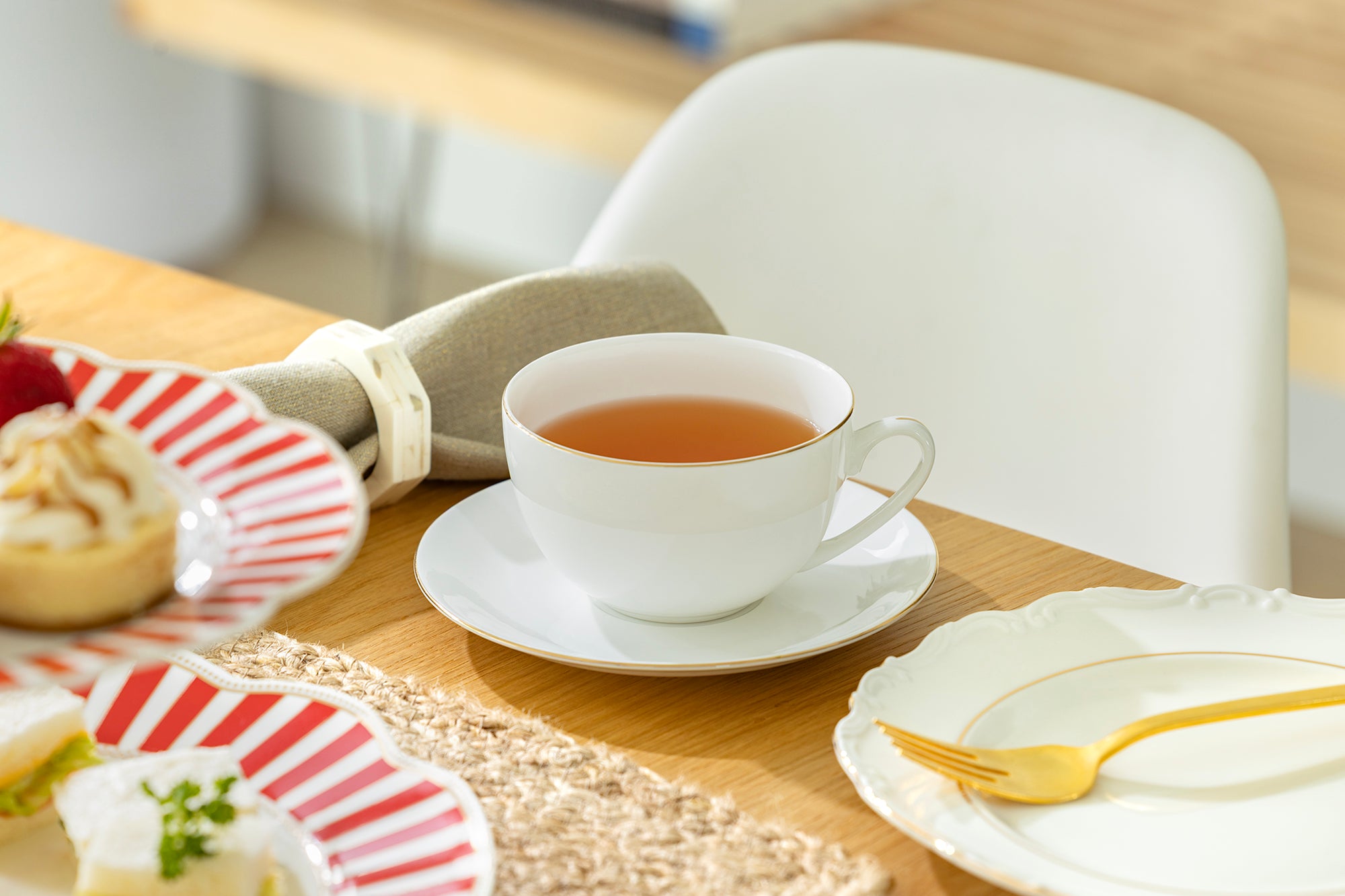 Gold Rim Blanc Bone China Cup and Saucer