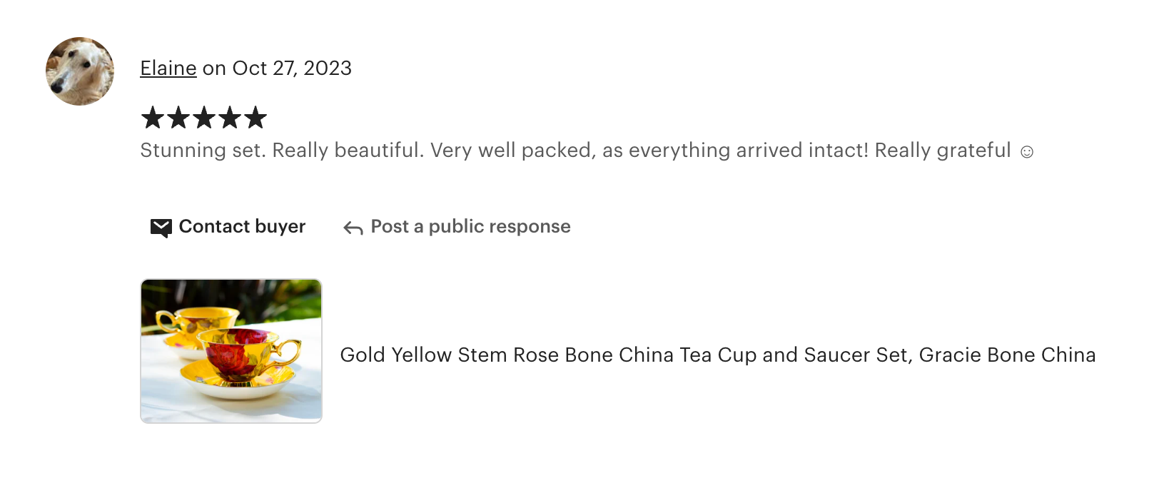 • Gold Yellow Stem Rose Bone China Tea Cup and Saucer