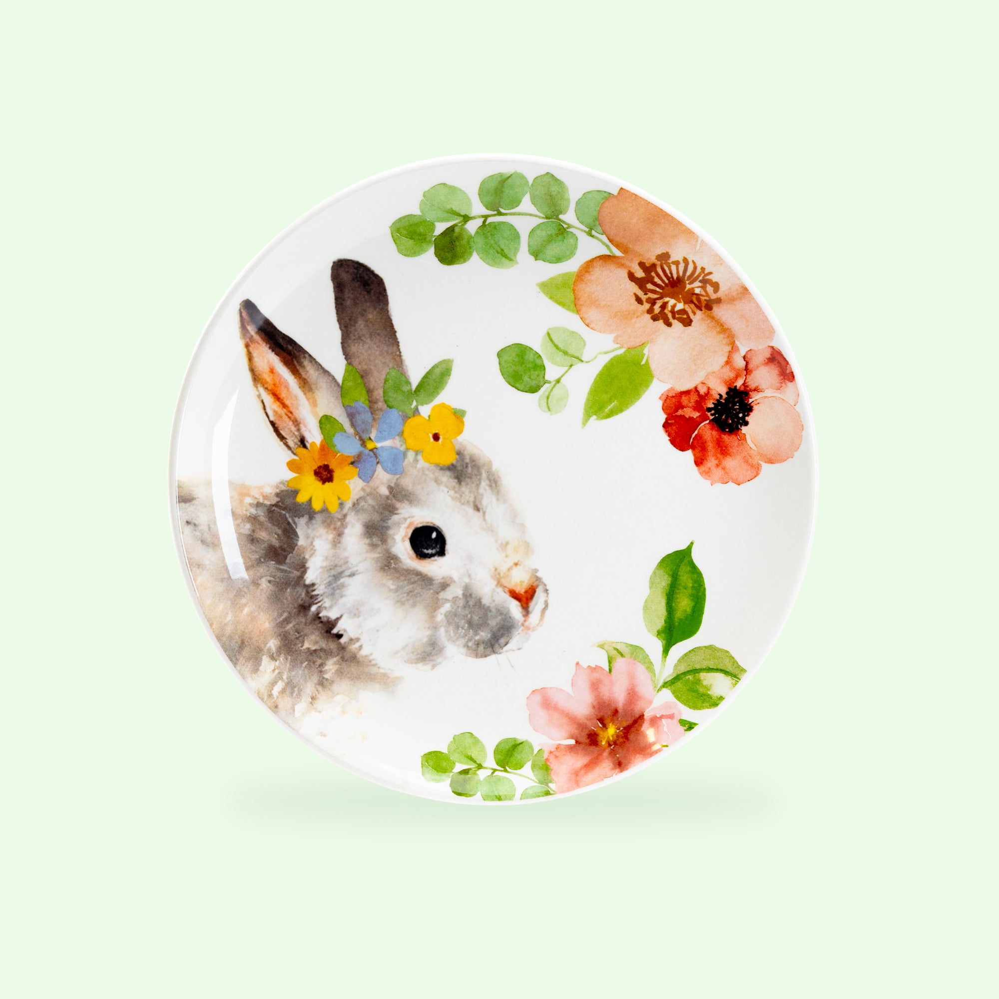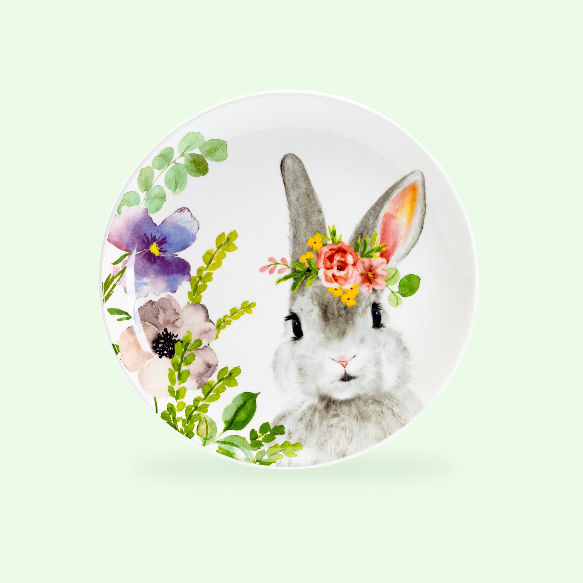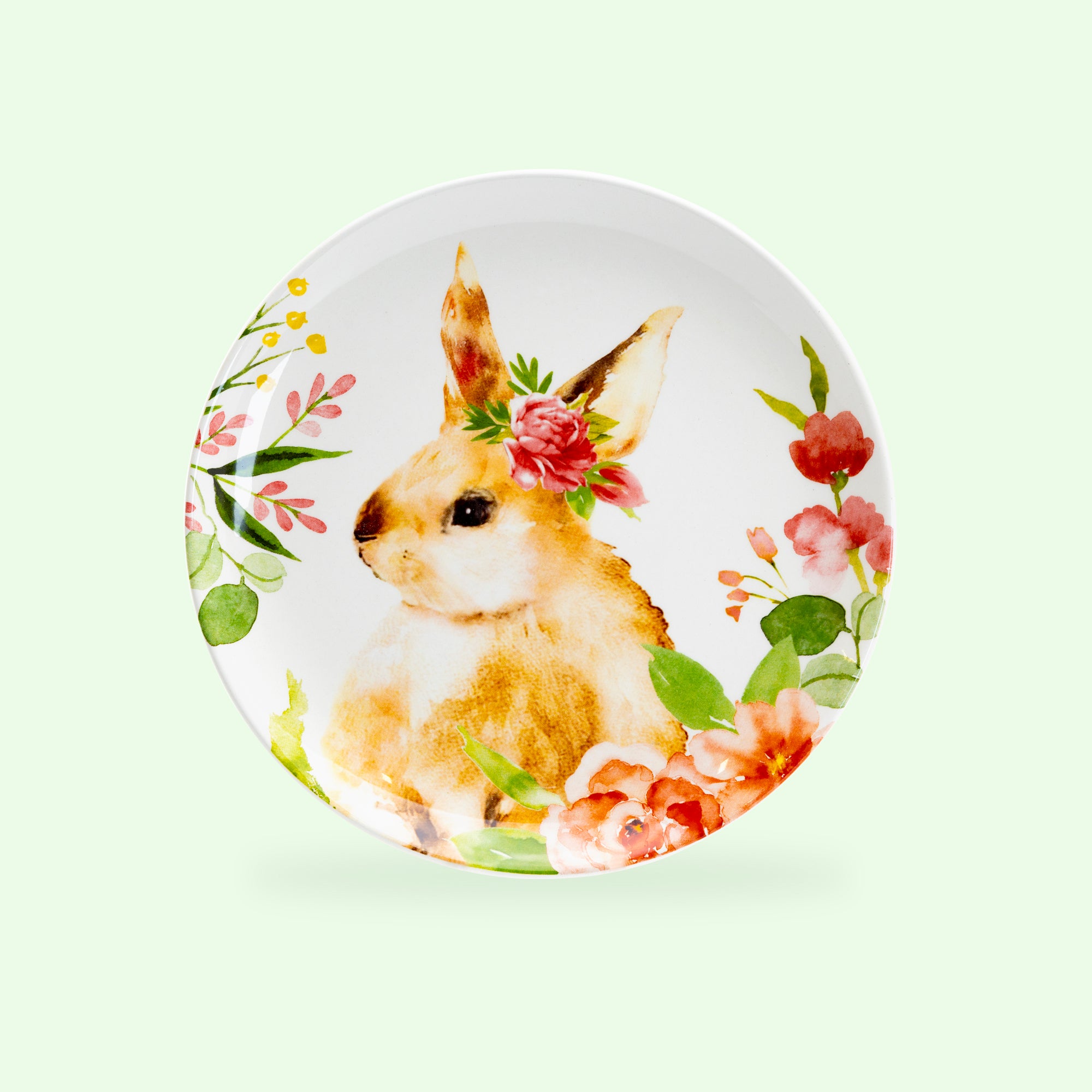 Each set includes - four 8.5" assorted flower bunnies plates. This product is handcrafted and you may notice small air bubbles, pinholes, or uneven paint on its surface. This is normal and to be expected as a result of the intricate ceramic manufacturing process.