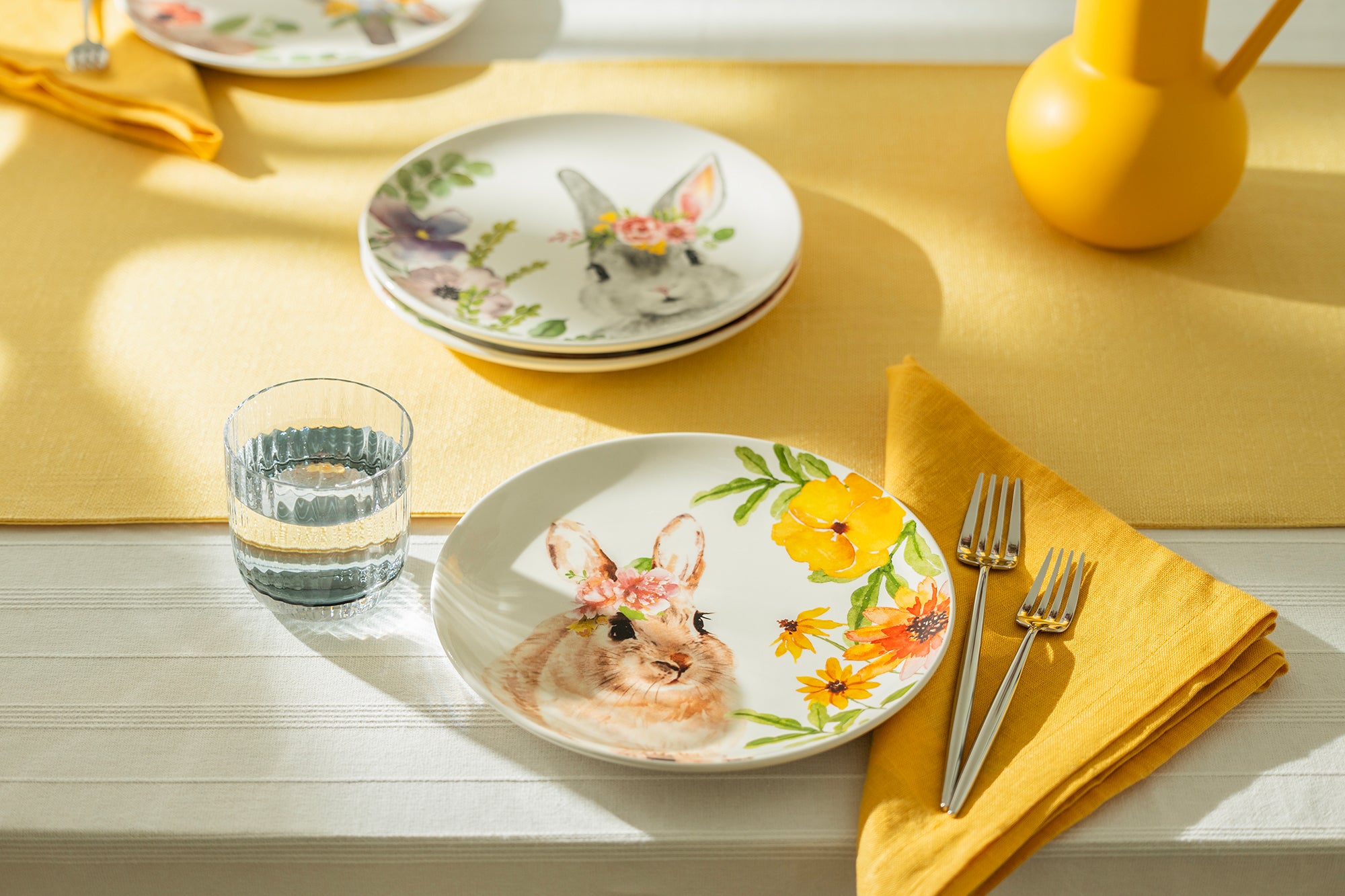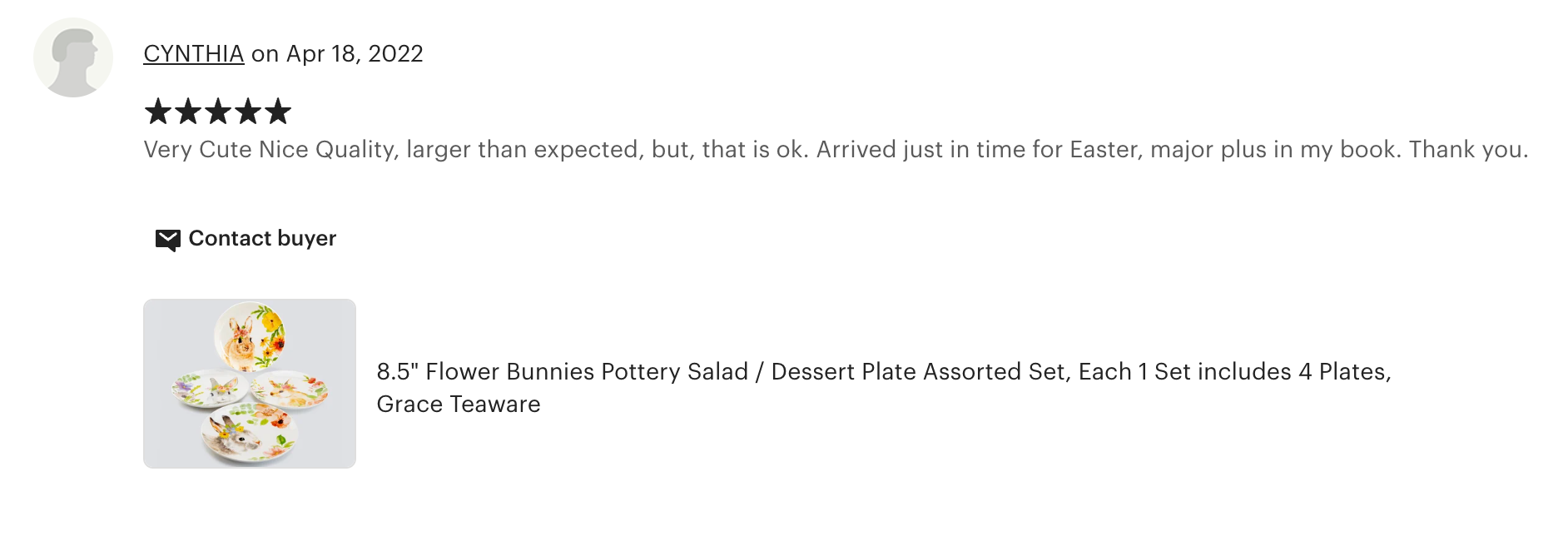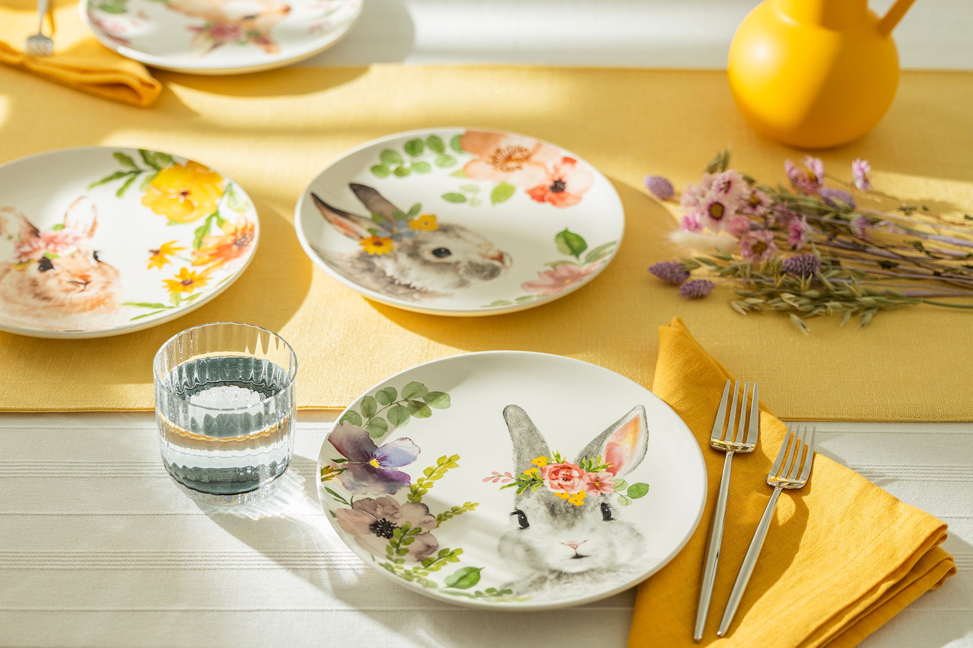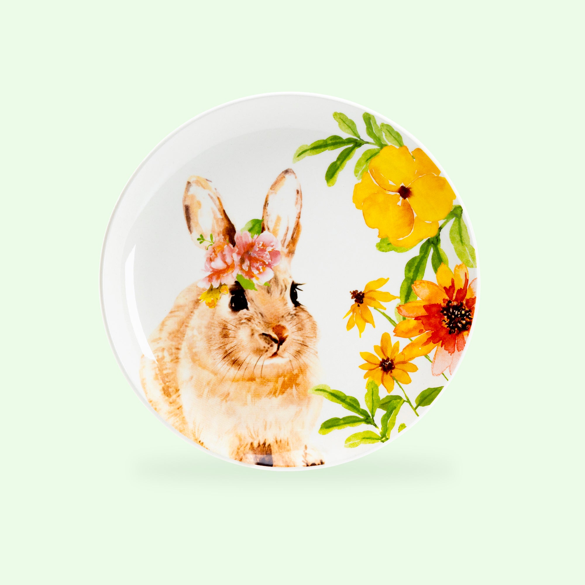 Each set includes - four 8.5" assorted flower bunnies plates. This product is handcrafted and you may notice small air bubbles, pinholes, or uneven paint on its surface. This is normal and to be expected as a result of the intricate ceramic manufacturing process.