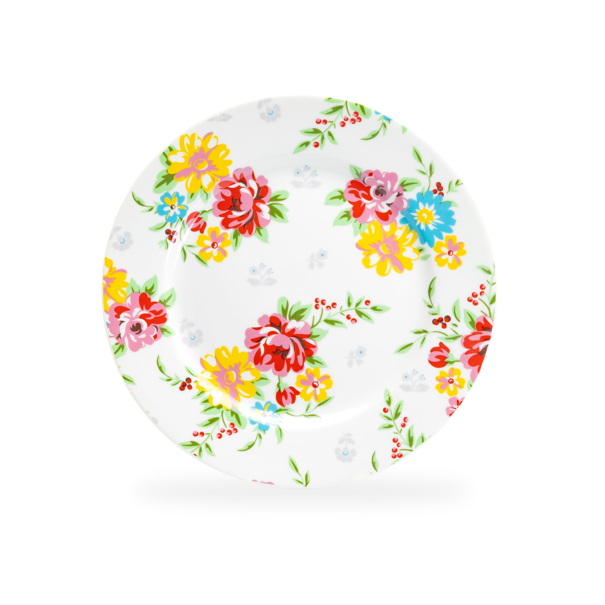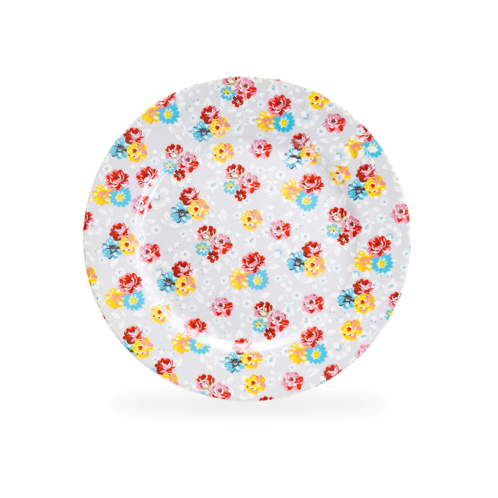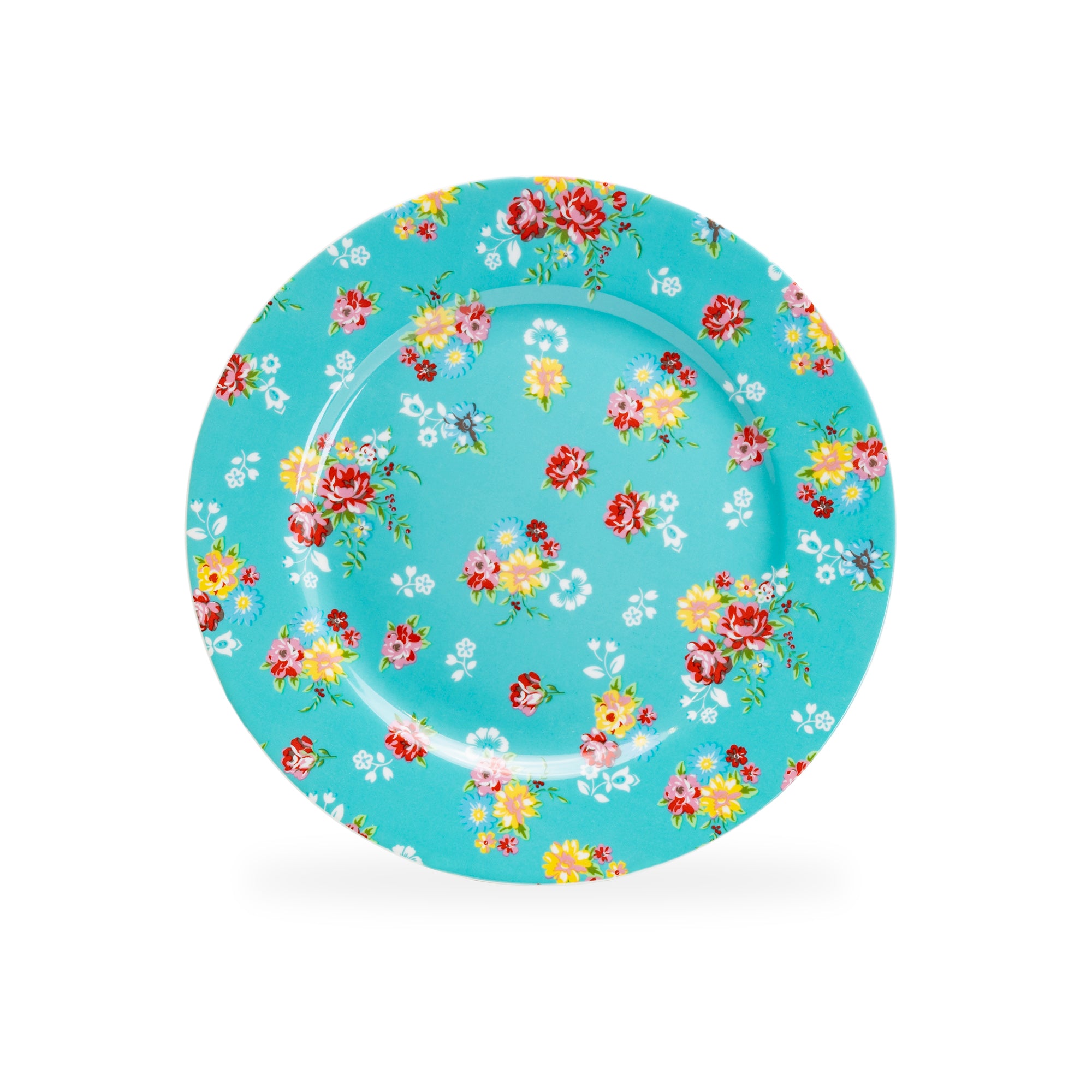 Each set includes - 6 assorted shabby rose pattern dessert plates