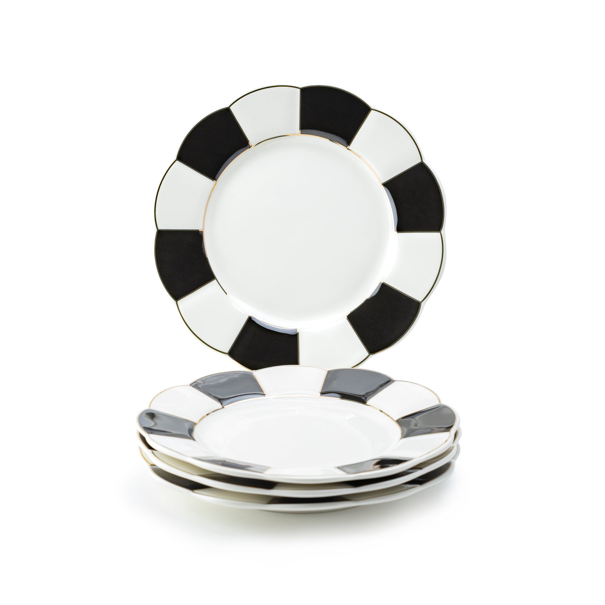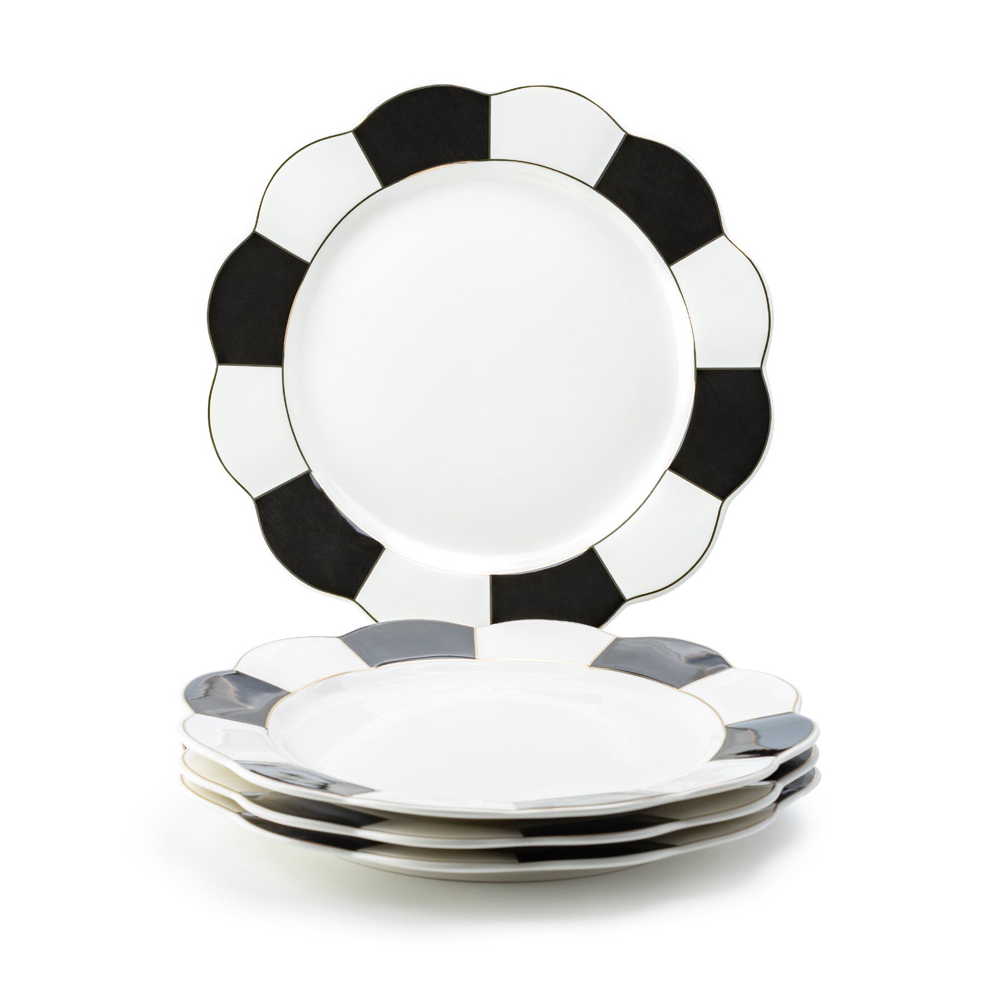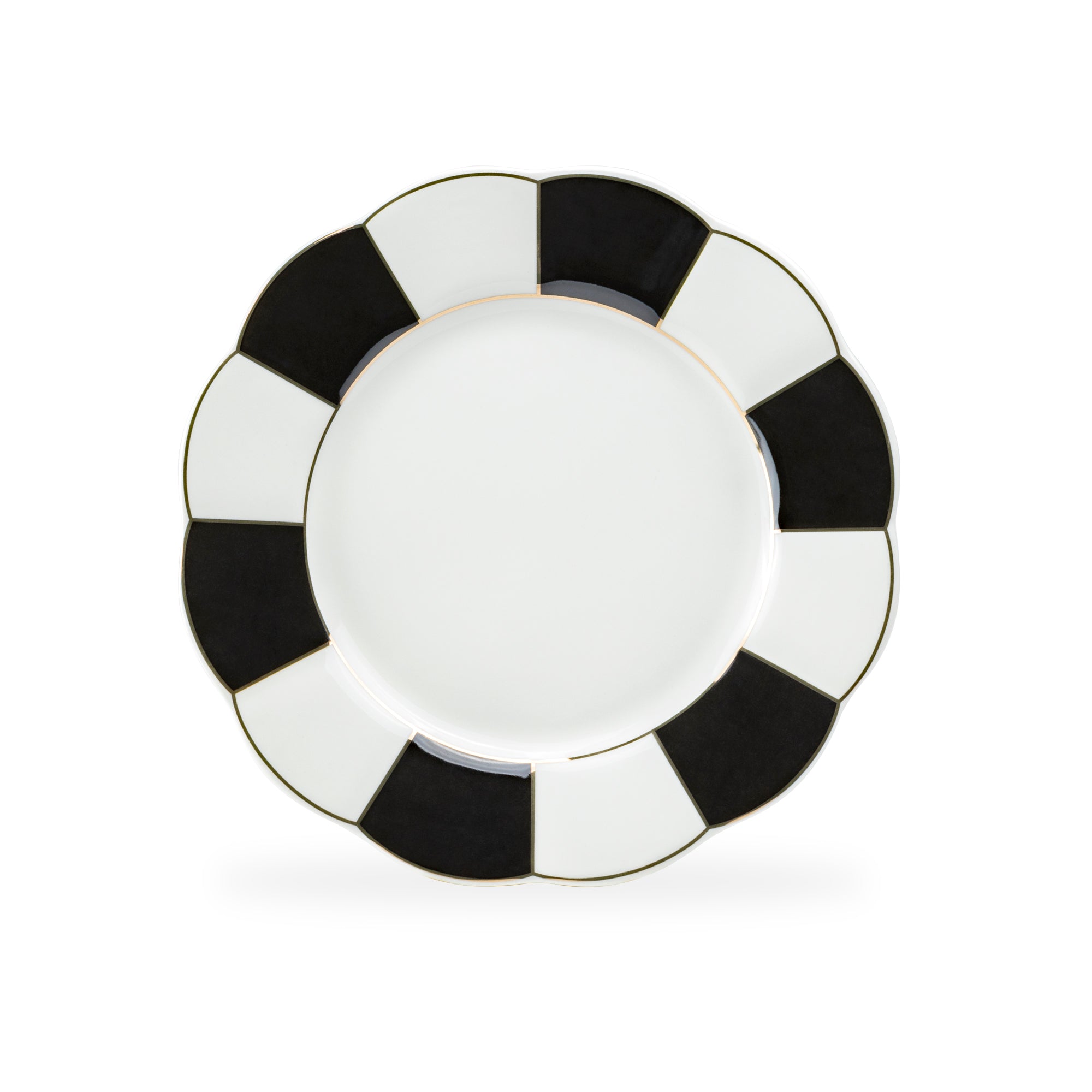 • Black and White Scallop Fine Porcelain Dessert/Dinner Plate