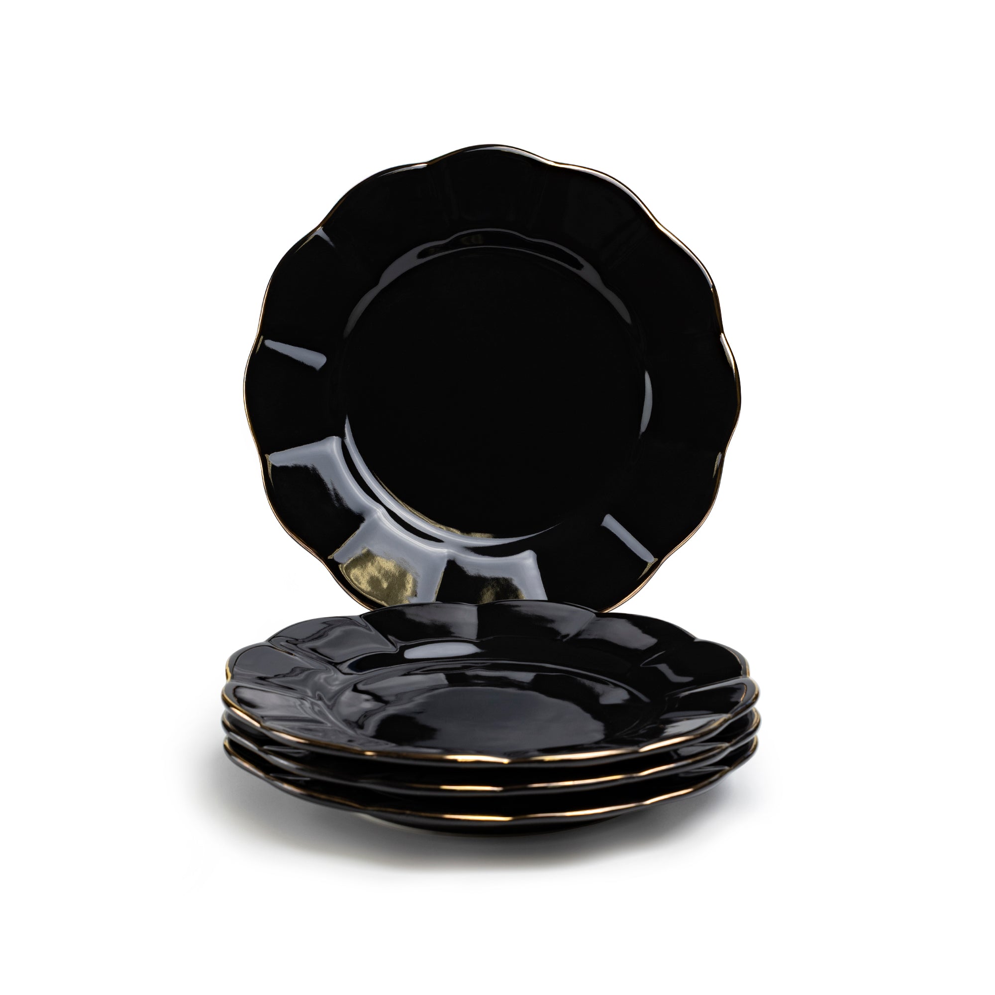 • Black Gold Scallop Fine Porcelain Dessert/Salad Plate