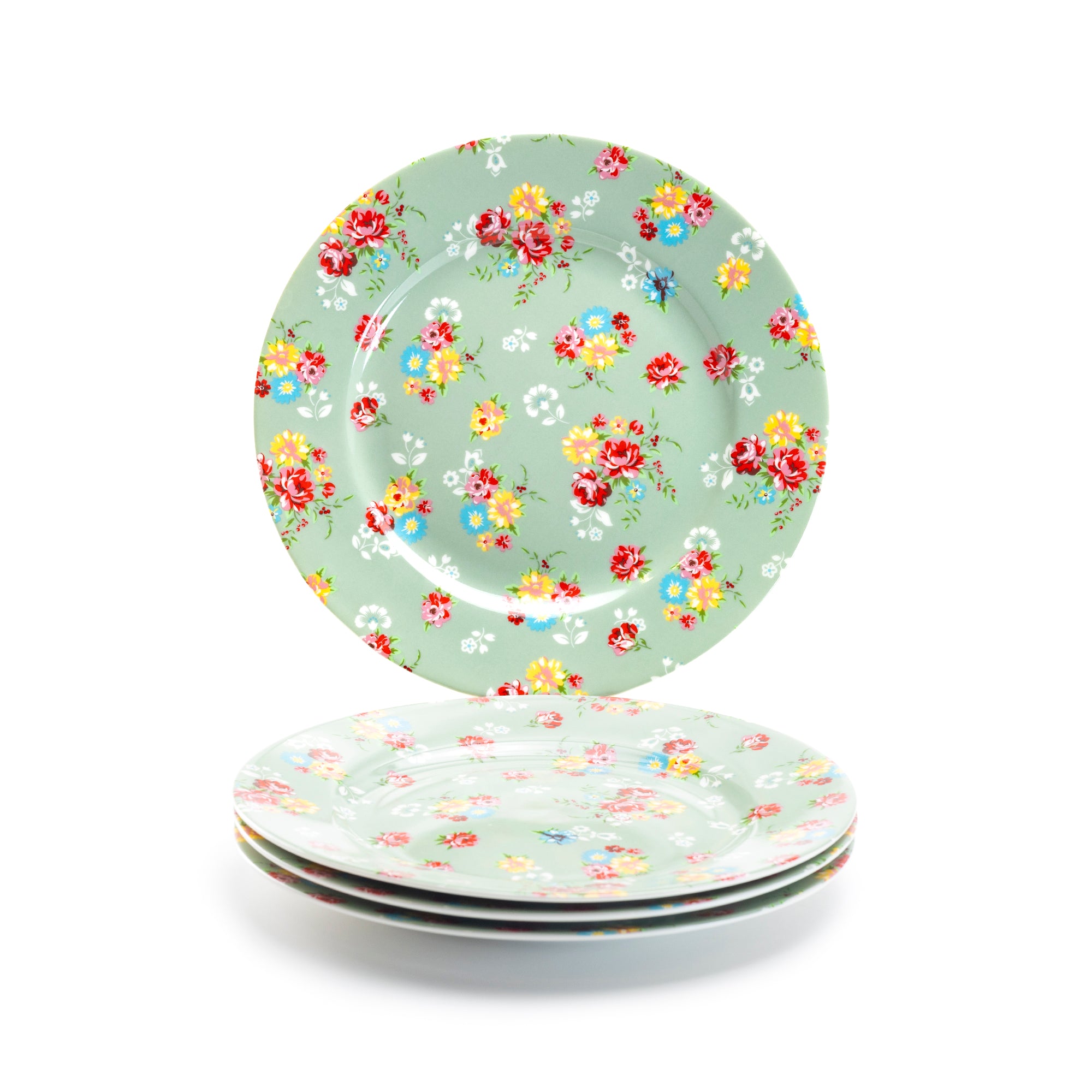 Green Shabby Rose Fine Porcelain Dessert Plate
