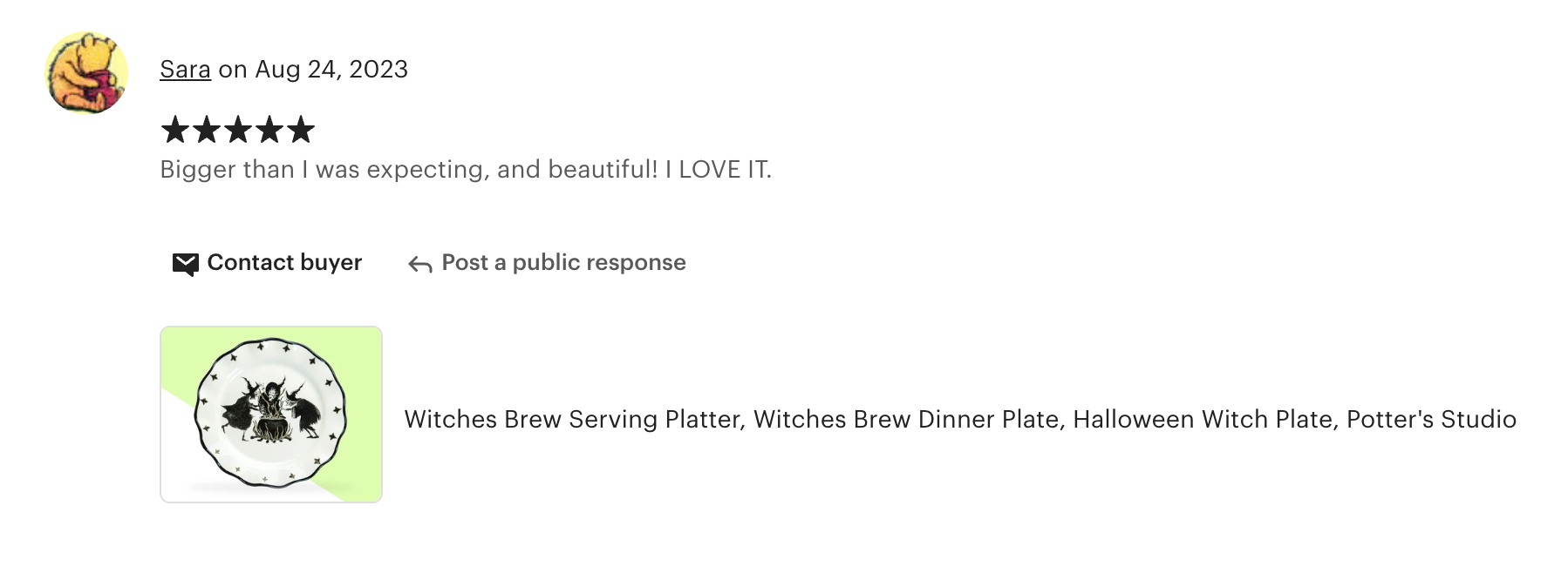 This product is handcrafted and you may notice small air bubbles or pinholes on its surface. This is normal and to be expected as a result of the intricate ceramic manufacturing process. Overall, it's a very cute, unique and nice designed product, and it perfectly matches the Witches Brew Pitcher and Flying Witch tea cup.