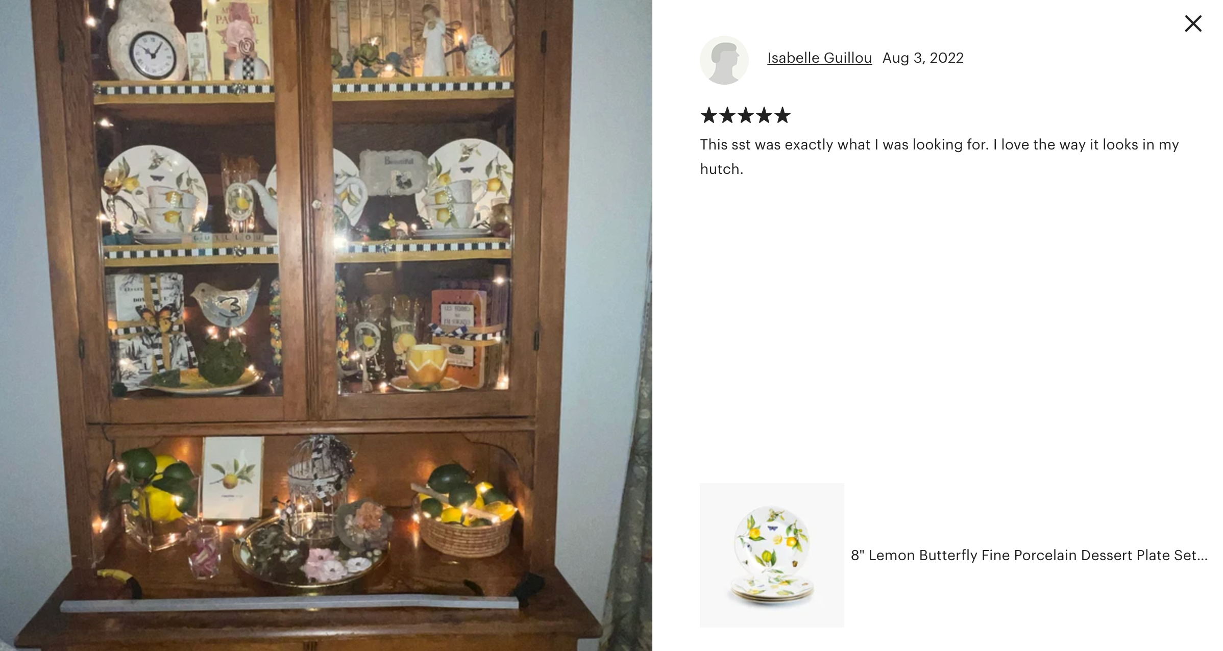 • 8" Lemon Butterfly Fine Porcelain Dessert Plate